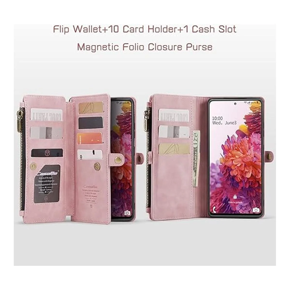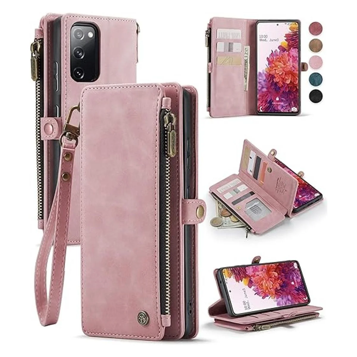 4. Ranuras para tarjetas, cremallera y pulsera: la funda para Galaxy S20 fe incluye 10 tarjeteros 1 bolsa con cremallera 1 ranura para efectivo, sostiene tu identificación, tarjetas de crédito, licencia de conducir, facturas, monedas y un poco de dinero en efectivo sin problemas. La cremallera ha sido probada más de 5000 veces; con una correa de cordón extraíble, proporcionando un método de agarre opcional.