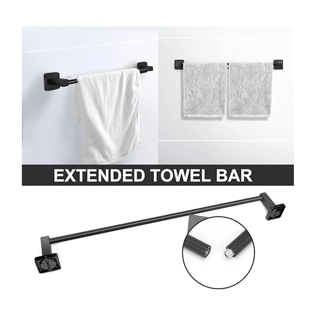 Superficie lisa: estas barras de toalla están pulidas por múltiples procesos, por lo que son sin costuras y suaves, no dañan tu ropa. Sin bordes afilados, cuelga de forma segura la bata de baño, toalla de baño, pantalones y camisa, trajes de baño, abrigos, bolsos, organizador de ducha u otras cosas.