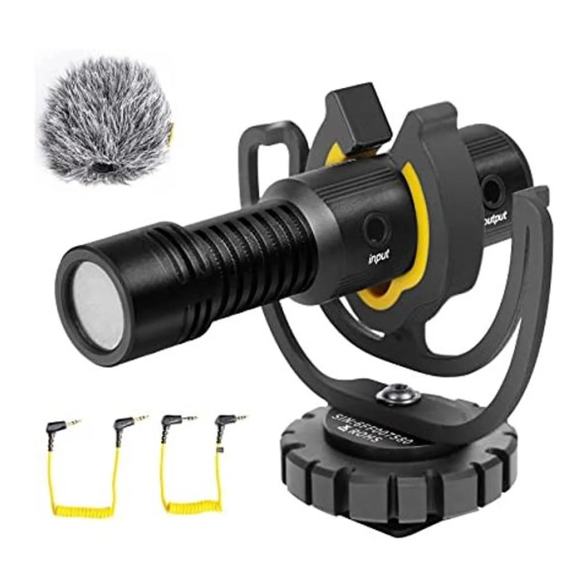 Incluye: micrófono, parabrisas de piel sintética, cable de cámara TRS, cable de teléfono TRRS, soporte de choque