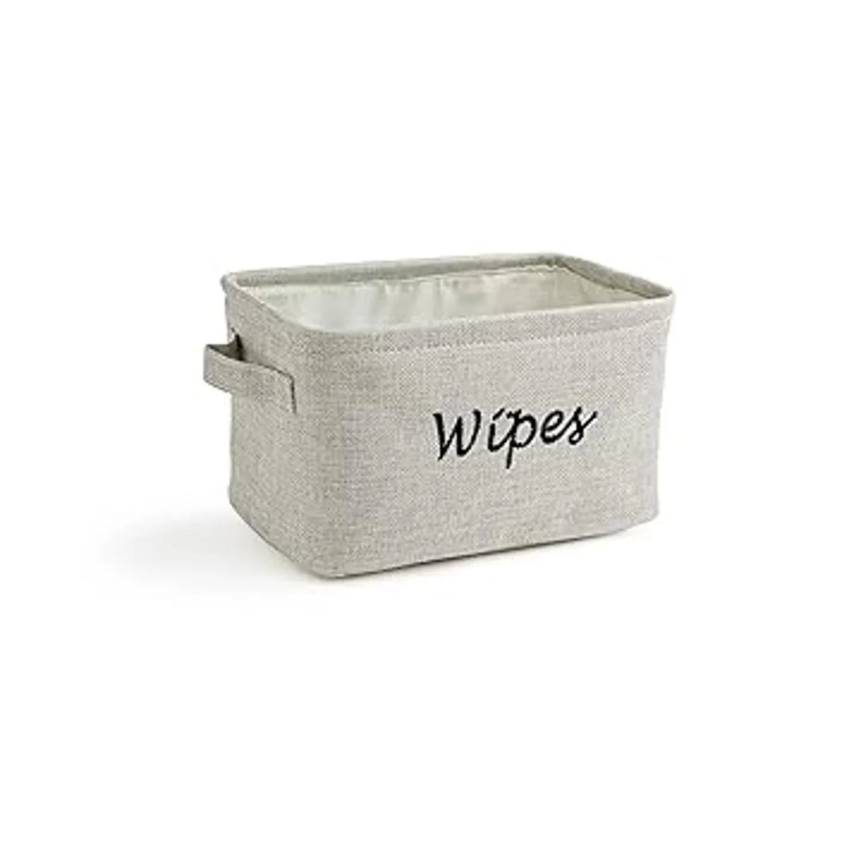 Dejaroo Cubo de almacenamiento para toallitas de bebé, organizador de guardería, organizador de guardería, bordado, ecológico, lino gris gris