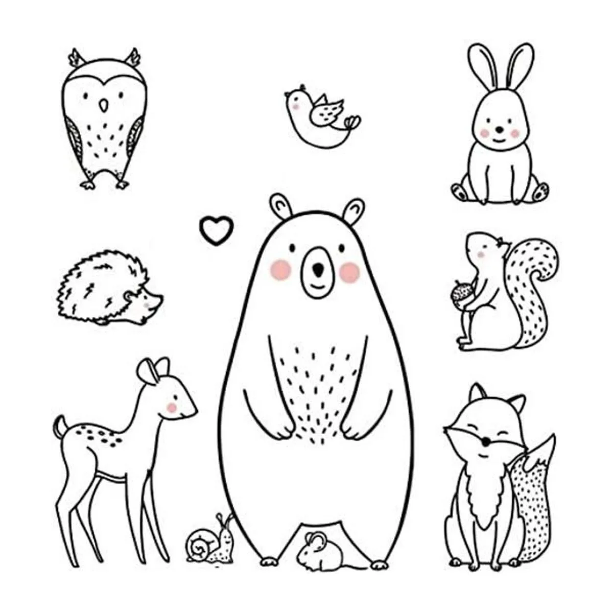 Calcomanías de pared de animales grandes con oso, búho, conejo y gato