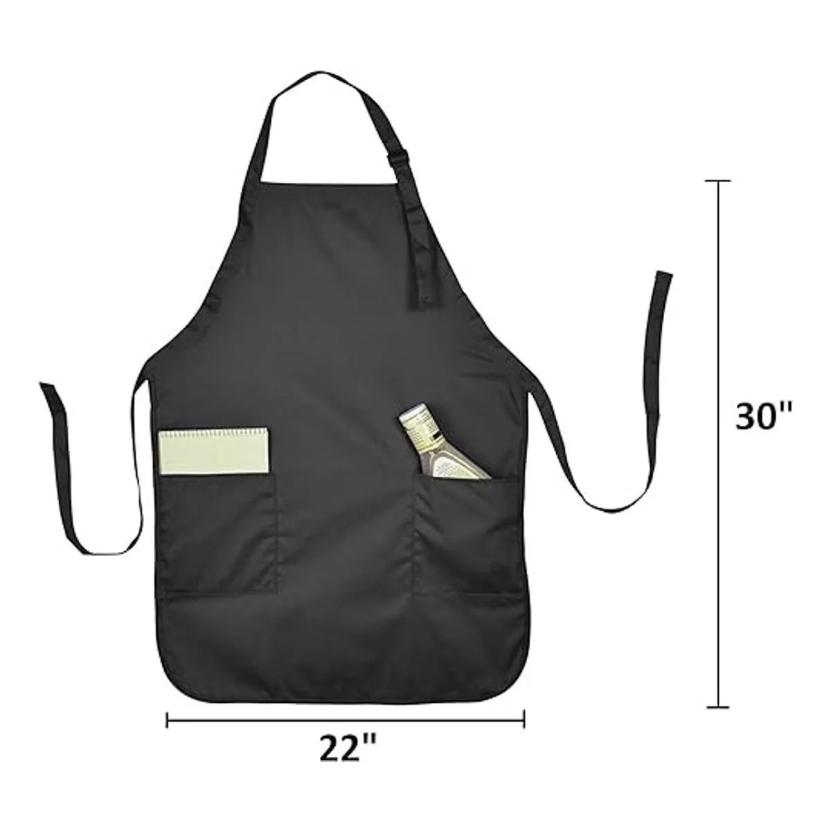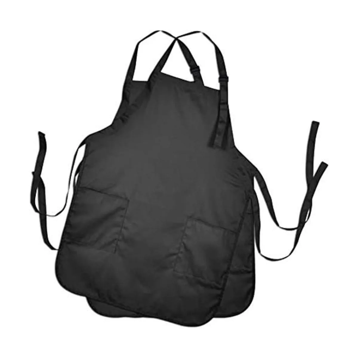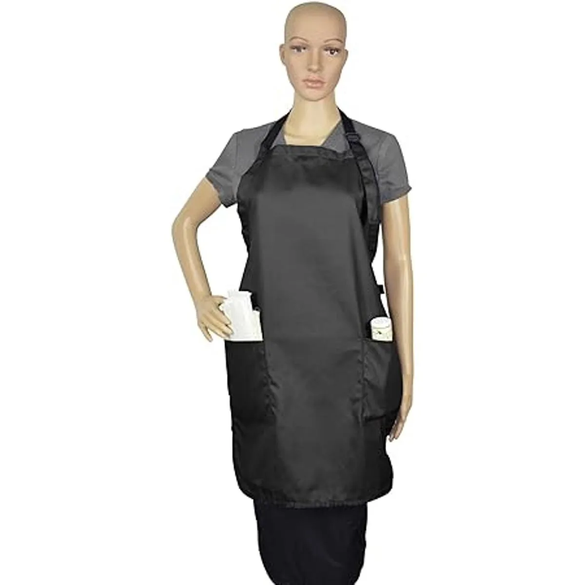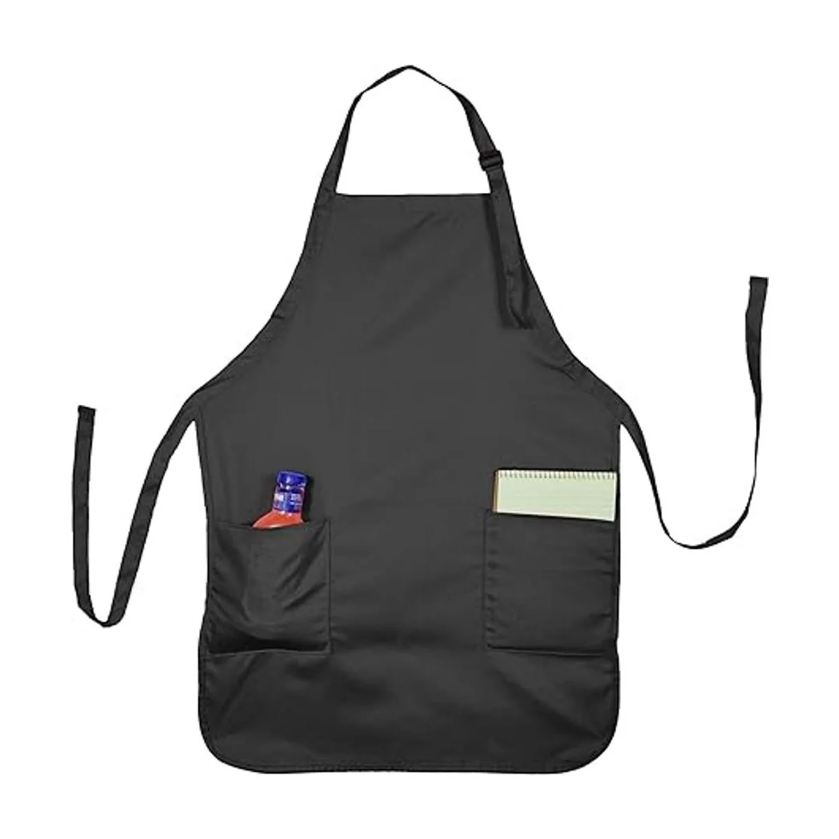 Delantal de cocina para restaurante u hogar, estilo pechera, de hilado de poli algodón 2 bolsillos, Algodón, Negro, 30