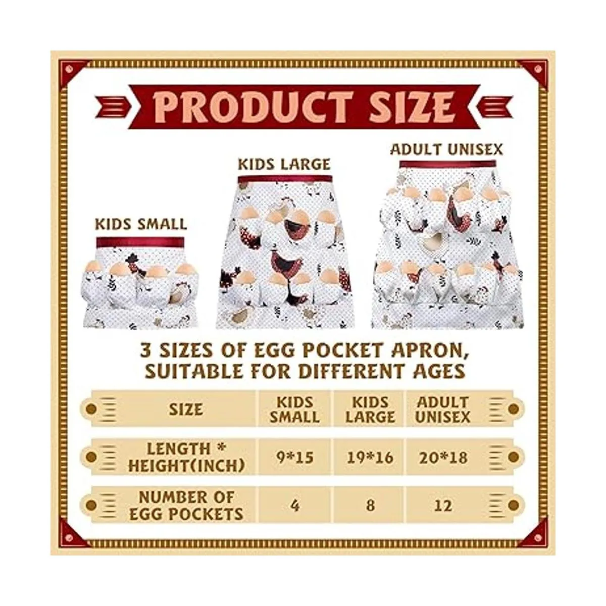 Delantales de bolsillo para huevos de 3 tamaños: se suministra con 3 delantales de huevo de pollo en 3 tamaños, son respectivamente de tamaño pequeño, tamaño mediano y grande, la cantidad es amplia para tu uso diario, adecuado para miembros de la familia de todas las edades