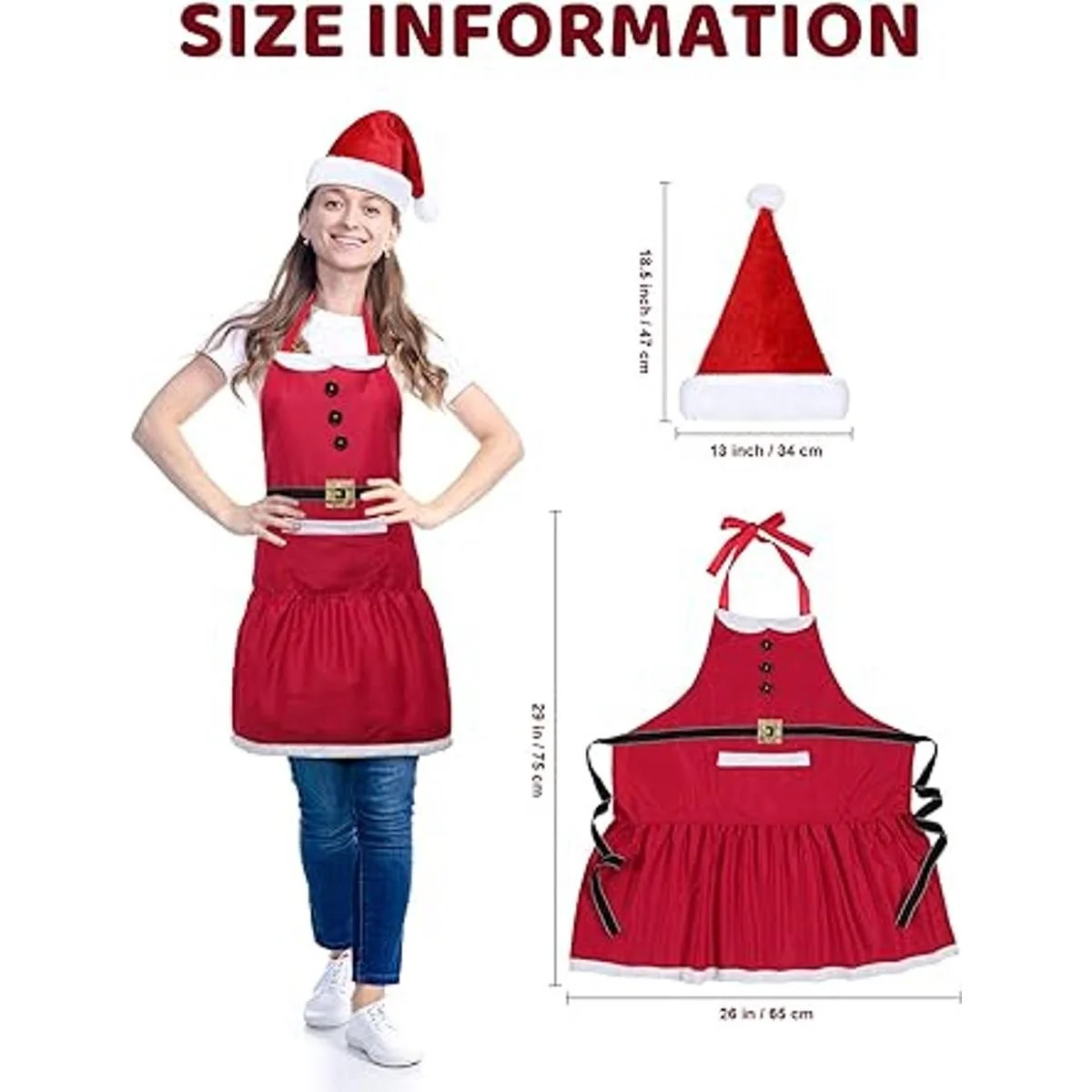 Este delantal y sombrero rojo son adecuados para ser usados para hornear, cocinar, hacer tareas domésticas, etc. También son hermosos y prácticos regalos para anfitriona, mamá, abuela, panadero o chef, se pueden regalar en Navidad, vacaciones, cumpleaños, día de la madre, cenas y días más importantes.
