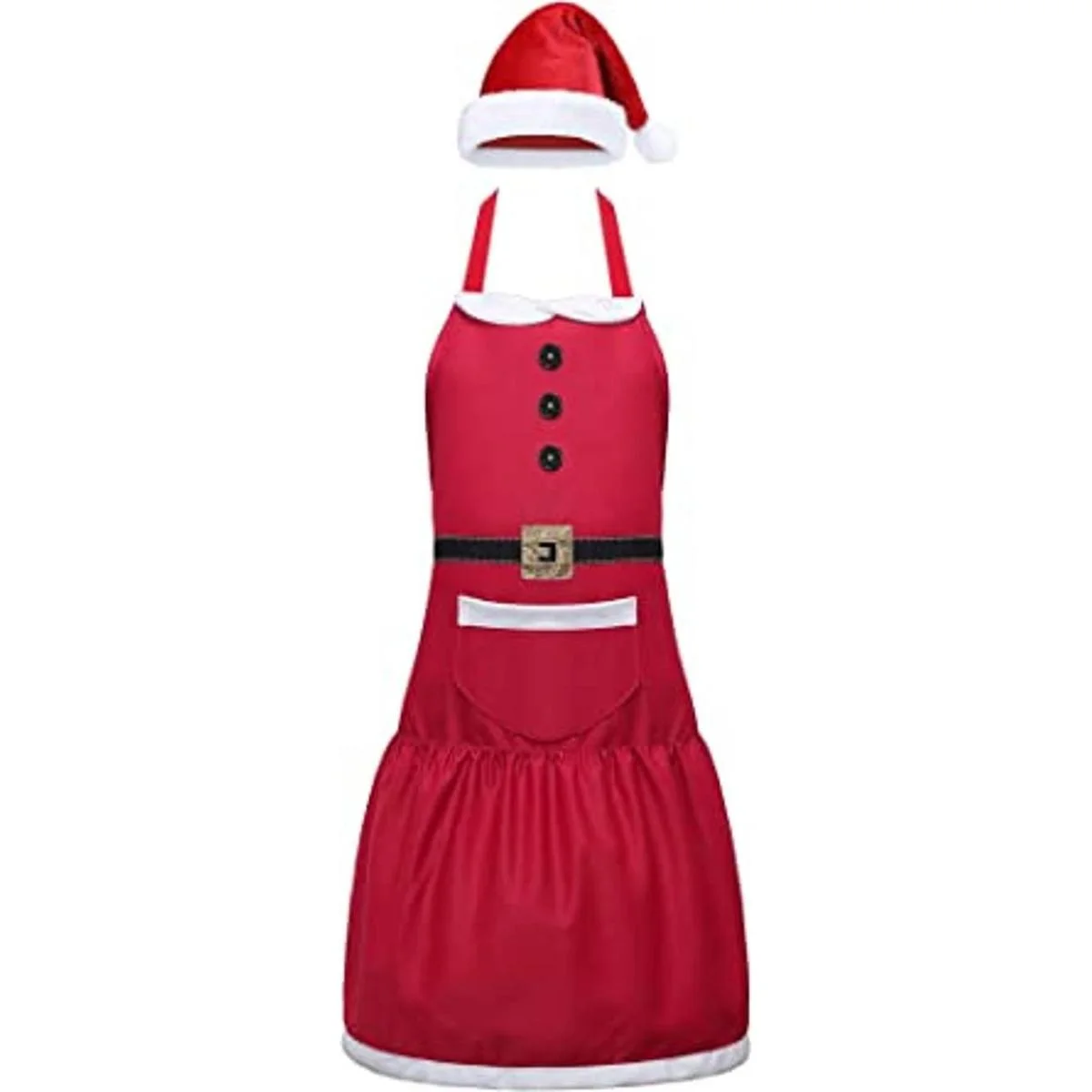 Delantal de Papá Noel de Navidad con bolsillos y sombrero para cocina, cocina y hornear, Rojo, M