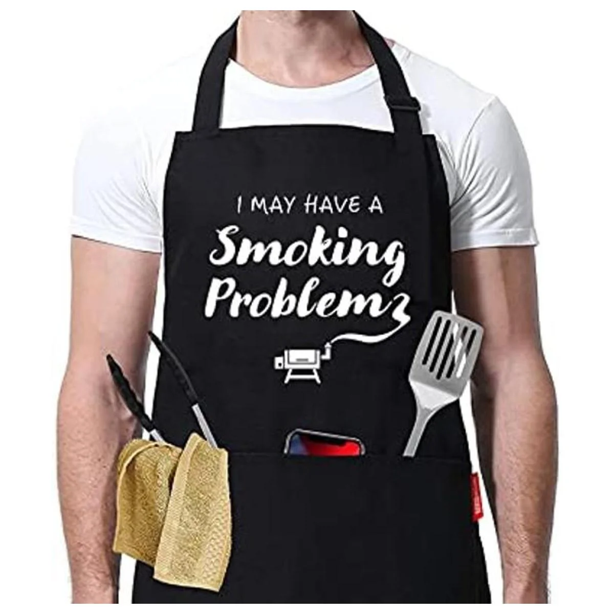 Delantal divertido para hombre I May Have a Smoking Problem Delantal para barbacoa Gran regalo de broma para marido, papá, hermano, novio