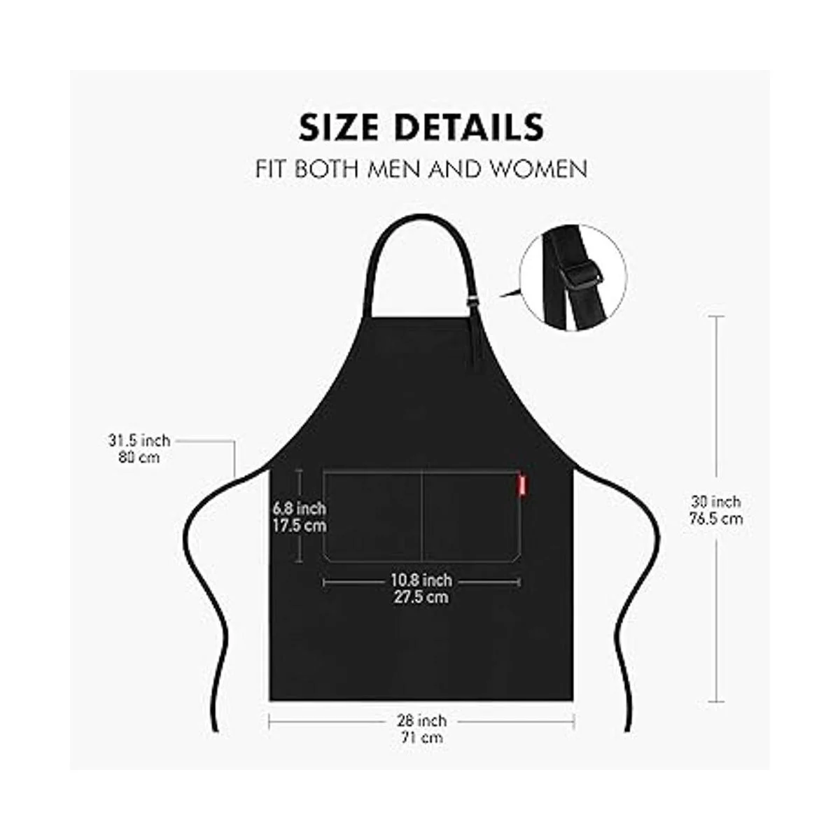 Tamaño universal: talla única. Adecuado tanto para hombres como para mujeres; mide 31 por 27.5 pulgadas; cuenta con una correa de cuello ajustable y correa de cintura de 60 pulgadas 30 pulgadas en cada lado. Estos delantales de cocina se adaptan a chefs pequeños, medianos y grandes con igual comodidad y funcionalidad.