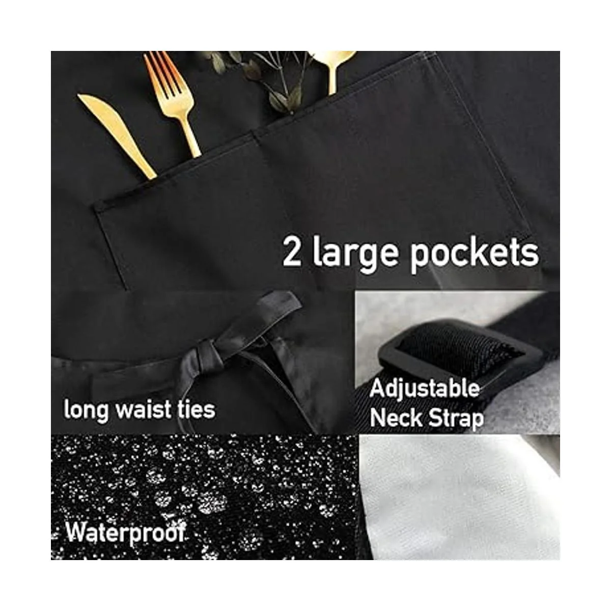 Práctico: el delantal tiene 2 bolsillos grandes que se pueden utilizar para guardar pequeñas cosas como teléfonos móviles, cucharas, abrebotellas, llaves, etc.