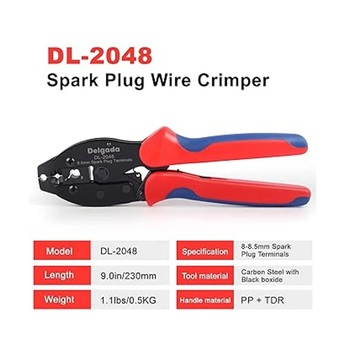Herramienta profesional de crimpado de alambre de bujía: tiene funciones de crimpado de bujía y pelado de cables, se adapta al diámetro del cable de bujía de 0.335 in. La mandíbula es adecuada para engarzar el diámetro del cable de la bujía de 0.335 in, preciso y rápido