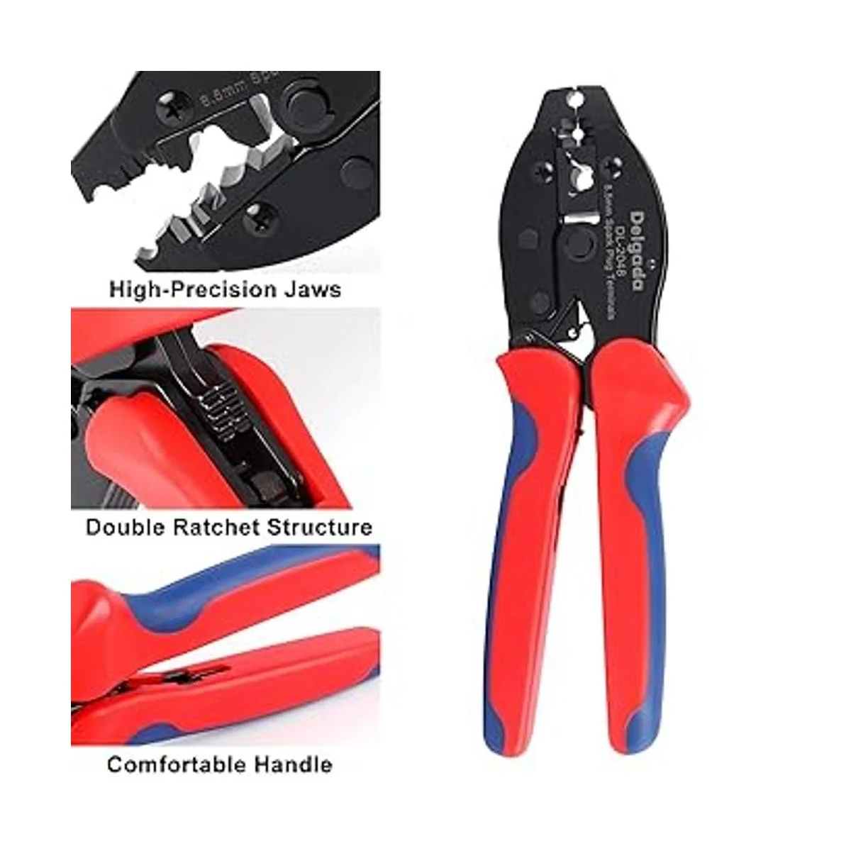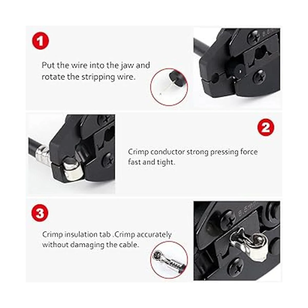Excelente material: los alicates de crimpado están hechos de acero de alta calidad, dureza y duradero. Las mandíbulas se pueden agarrar firmemente en cualquier caso, ahorrando tiempo y trabajo. Efecto de crimpado eficiente completo para evitar daños