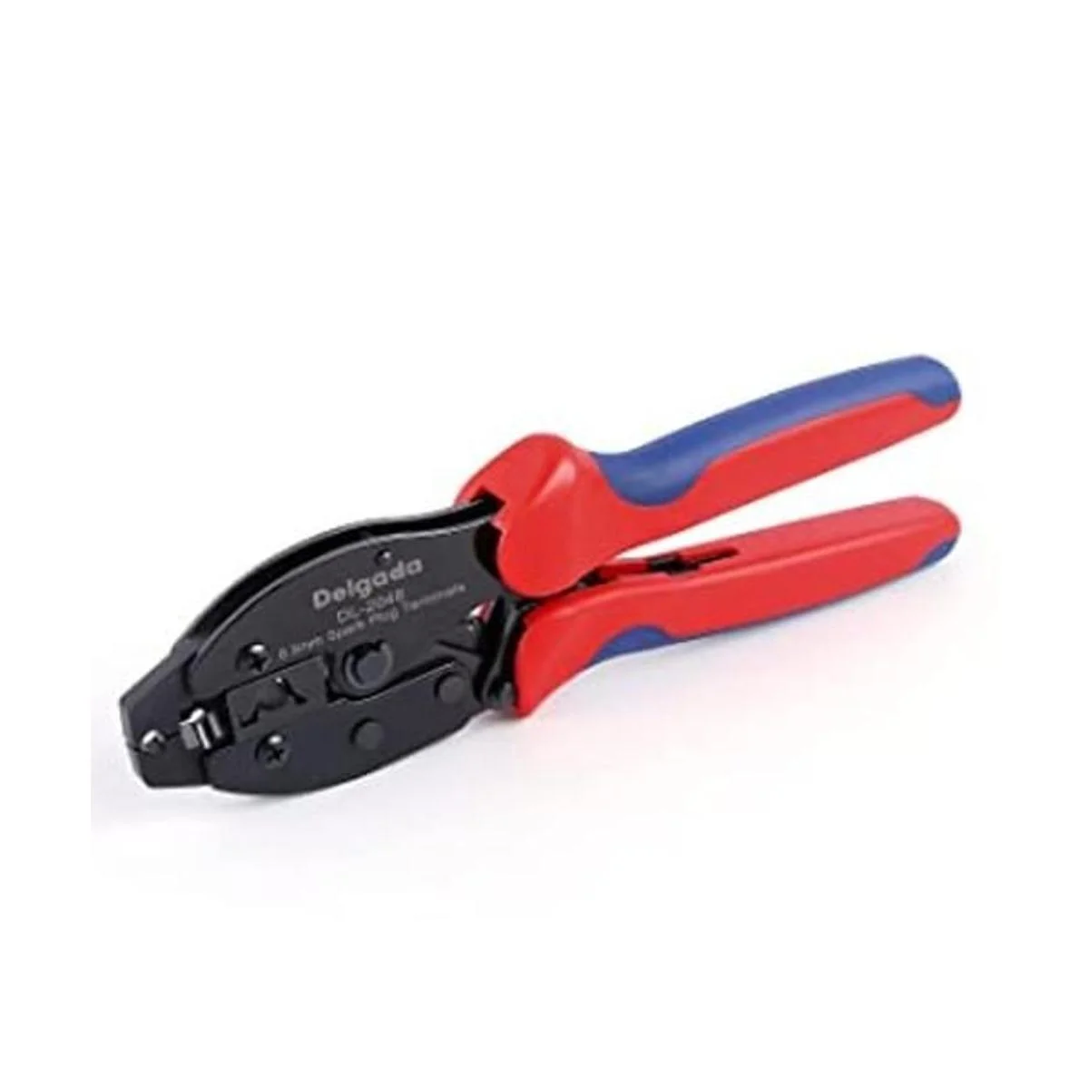 Diseño de mecanismo de trinquete: dos trinquetes gruesos garantizan un crimpado perfecto cada vez. Con el fin de evitar el exceso de crimpado, la herramienta de crimpado también tiene función de autoajuste para garantizar el efecto de crimpado y evitar dañar cables y terminales
