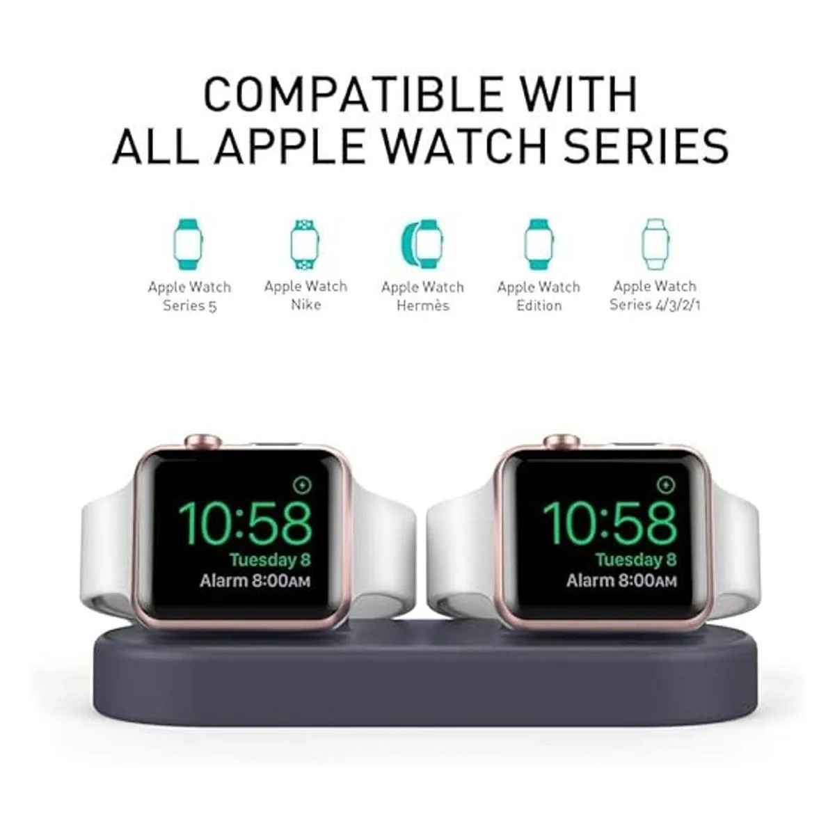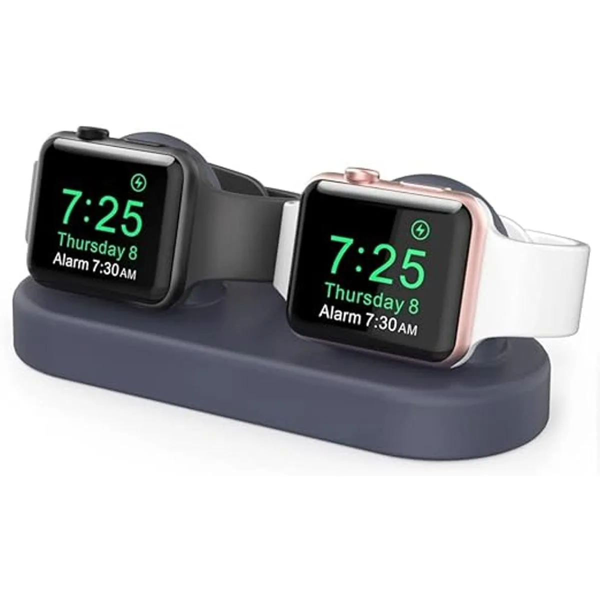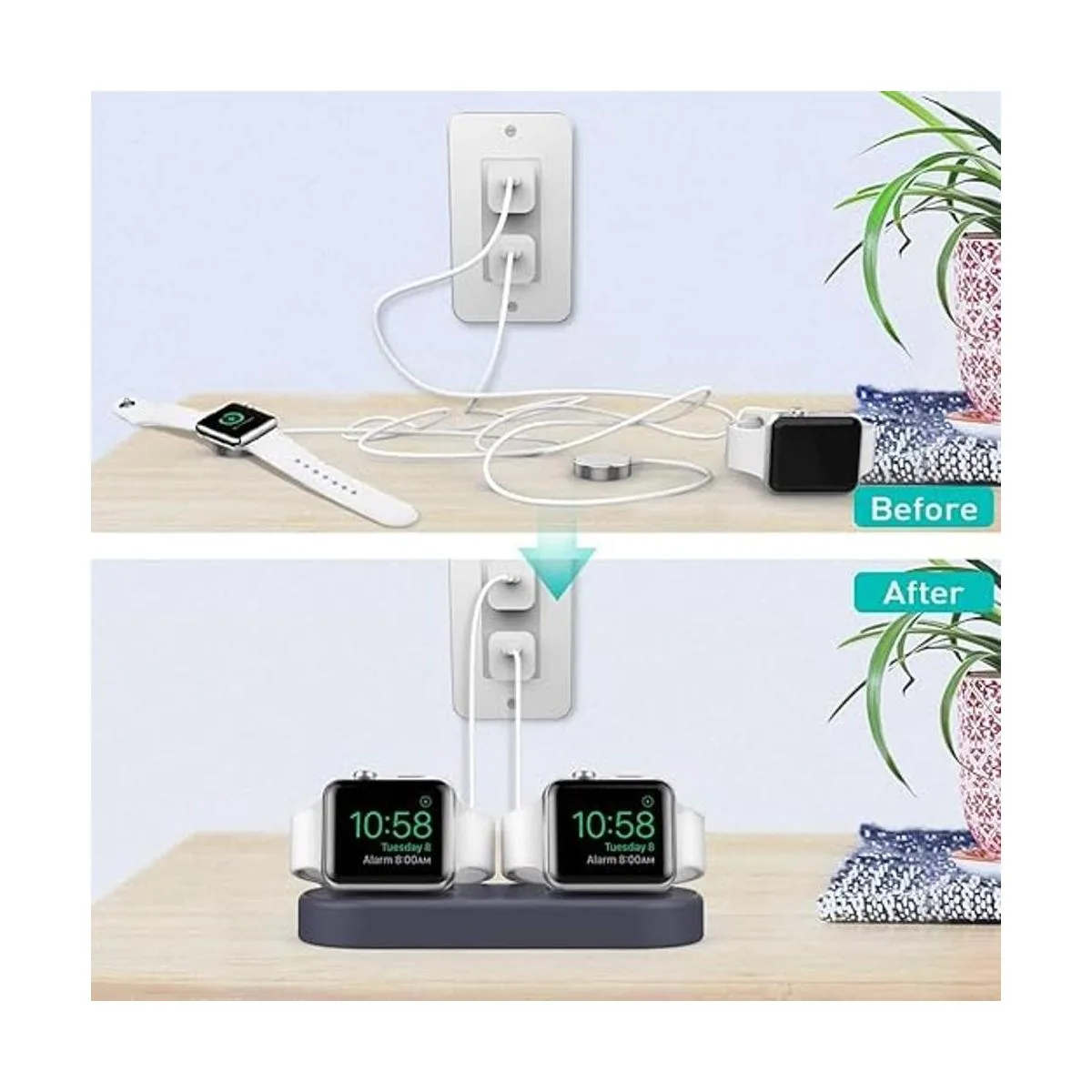 Delidigi Soporte de carga doble de silicona para cargador doble compatible con Apple Watch Series 8, 7, 6, SE, 5, 4, 3, 2, 1 45444241401.496 in, compatible con el modo de mesita de noche azul medianoche