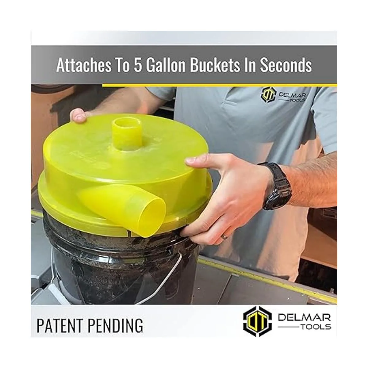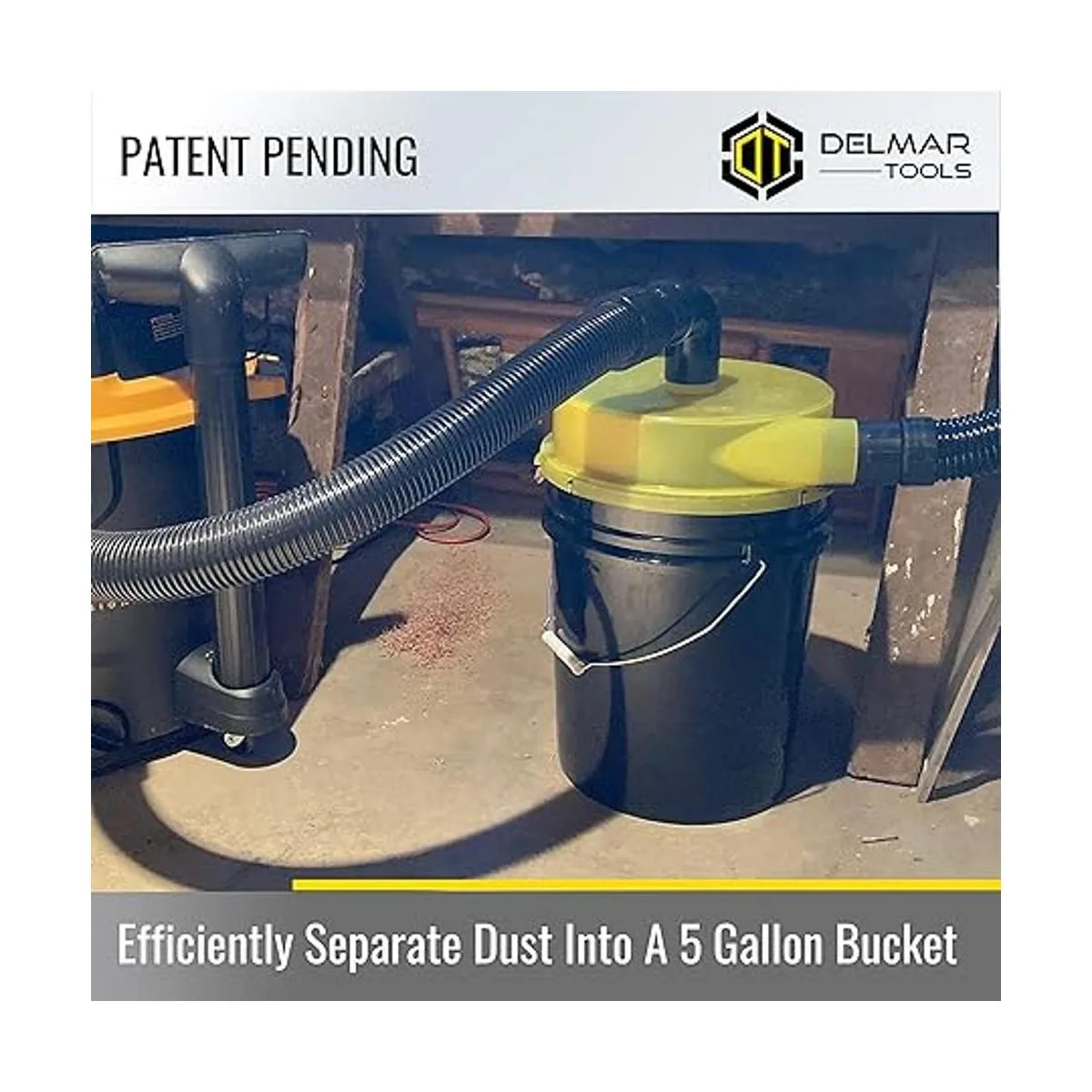 Delmar Tools Separador de polvo al vacío de tienda pendiente de patente, incluye adaptador de 90 y manguera, se fija a cubos de 5 galones en segundos, diseñado para una máxima comodidad