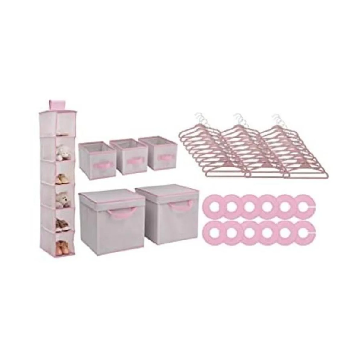 Lo que se incluye en este juego de 48 piezas: 30 perchas de terciopelo flocado, 12 divisores más cercanos que te permiten dividir la ropa por tamaño o color, 3 cubos impresos pequeños, 2 cubos grandes impresos con tapas, 1 organizador colgante de seis estantes.