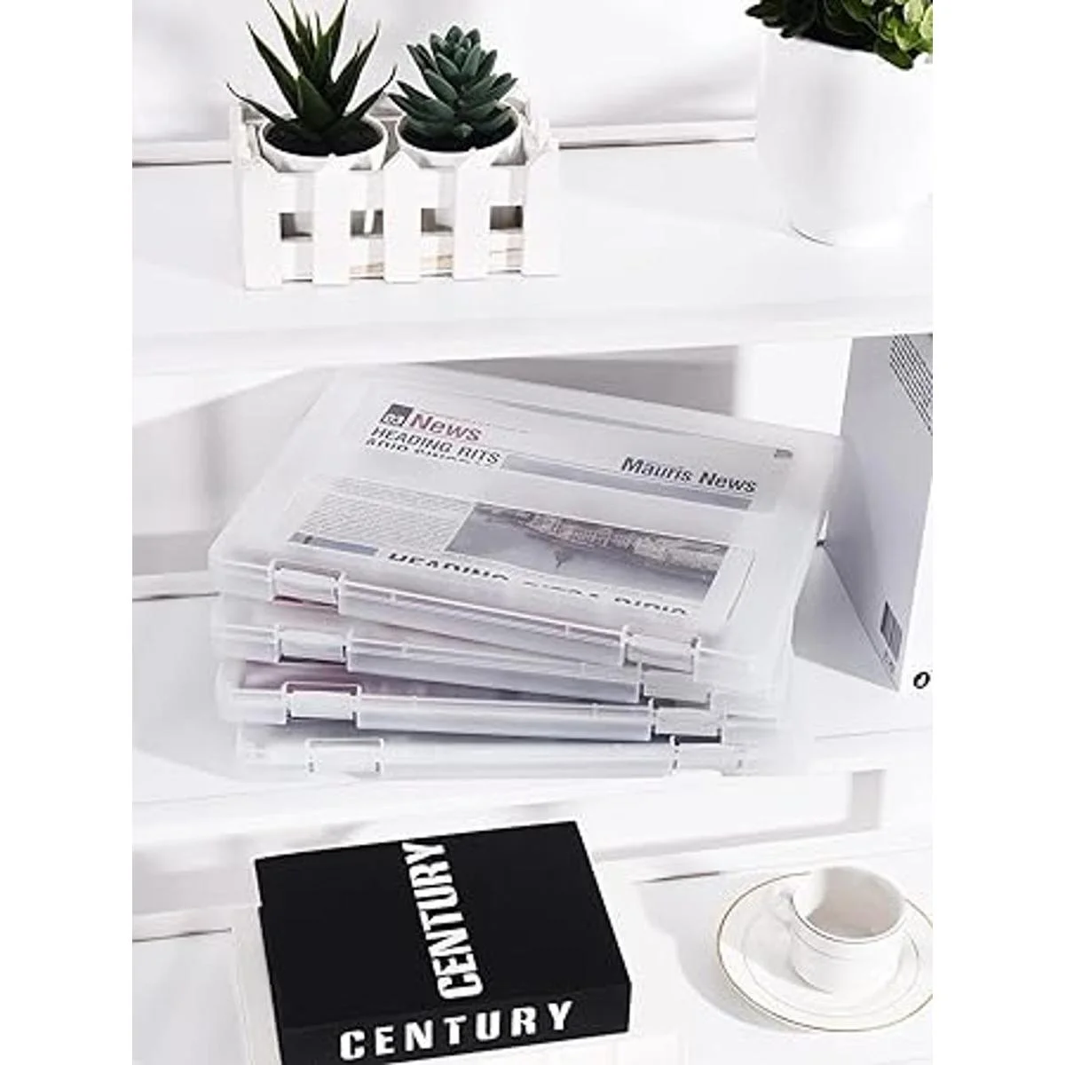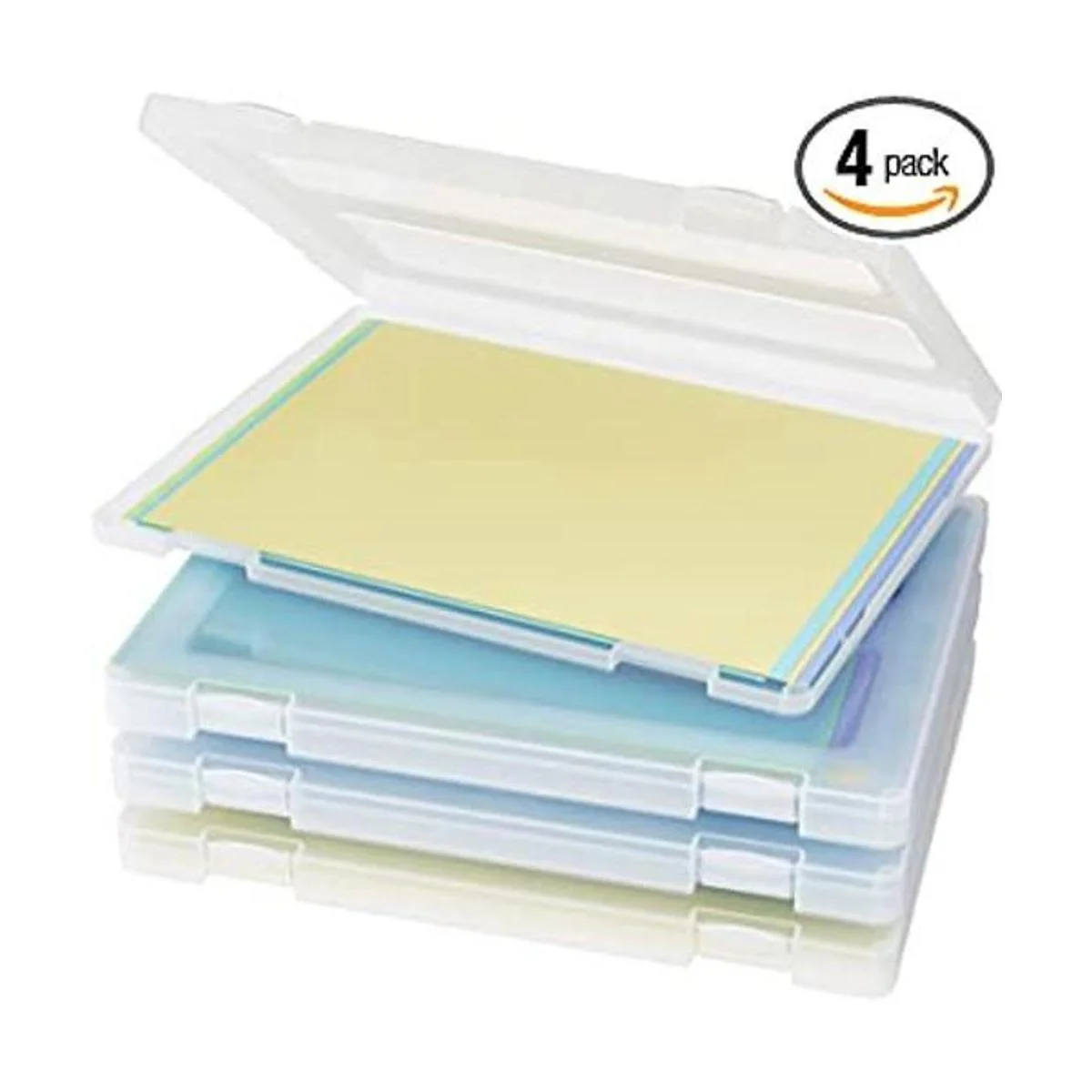 Denkee Paquete de 4 fundas para proyectos portátiles A4, caja de almacenamiento de plástico para papel de letras A4 de 8.5 x 11 pulgadas, protector de papel para revistas de documentos, suministros escolares de oficina, cajas organizadoras de almacenamiento 12.2 x 8.9 x 0.71 pulgadas