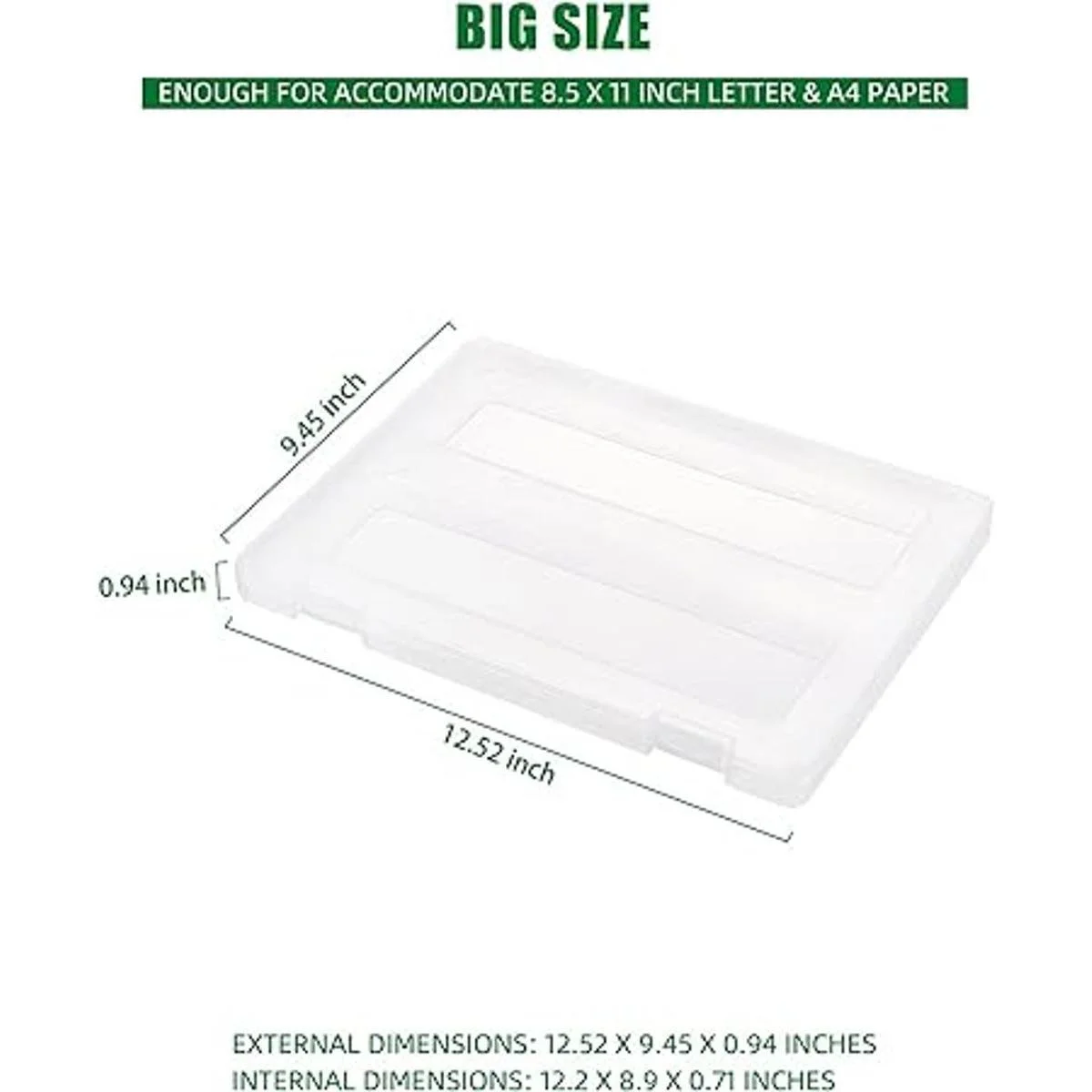 Material grueso y duradero: estas cajas de documentos están hechas de material de polipropileno y alta calidad, antipolvo, a prueba de humedad, buena flexibilidad, fuerte rodamiento de peso, no se deforma fácilmente, duradero para una larga duración y fácil de limpiar. Cajas de almacenamiento para documentos de tamaño externo: 12.52 x 9.45 x 0.94 pulgadas. Dimensiones internas: 12,2 x 8,9 x 0,7 pulgadas.