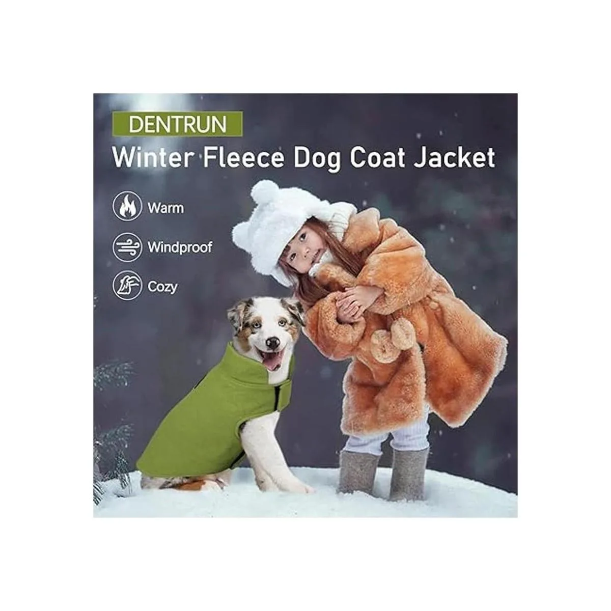DENTRUN Abrigo de forro polar para perros en invierno resistente al viento chaqueta reflectante para mascota chaleco para perro para razas de medianas a grandes para clima frío con acceso para la correa