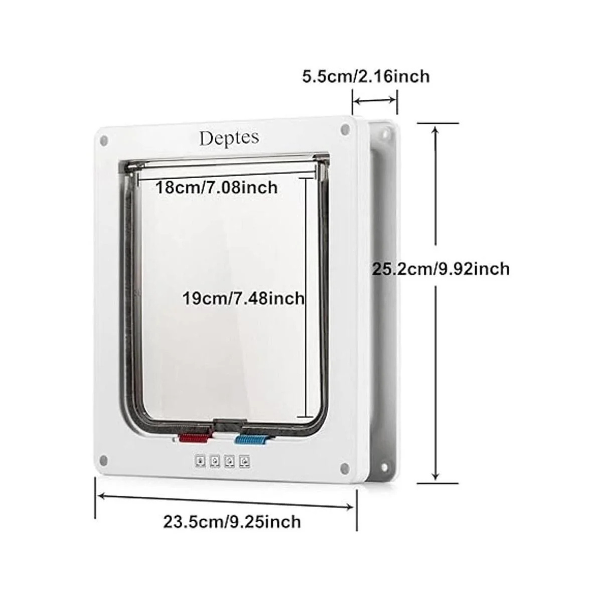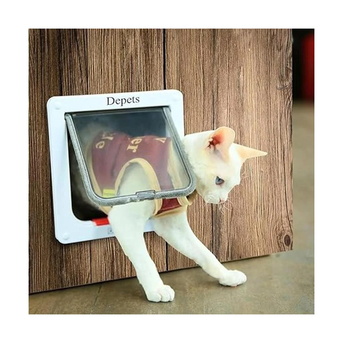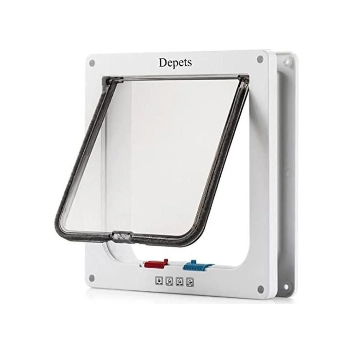 Depets Puerta grande para gatos tamaño exterior 9.9 x 9.2 pulgadas, puerta con solapa de gato con bloqueo de 4 vías para puertas interiores exteriores, puertas resistentes a la intemperie para gatos y perritos con circunferencia 23 pulgadas, adecuada para ventanas y paredes