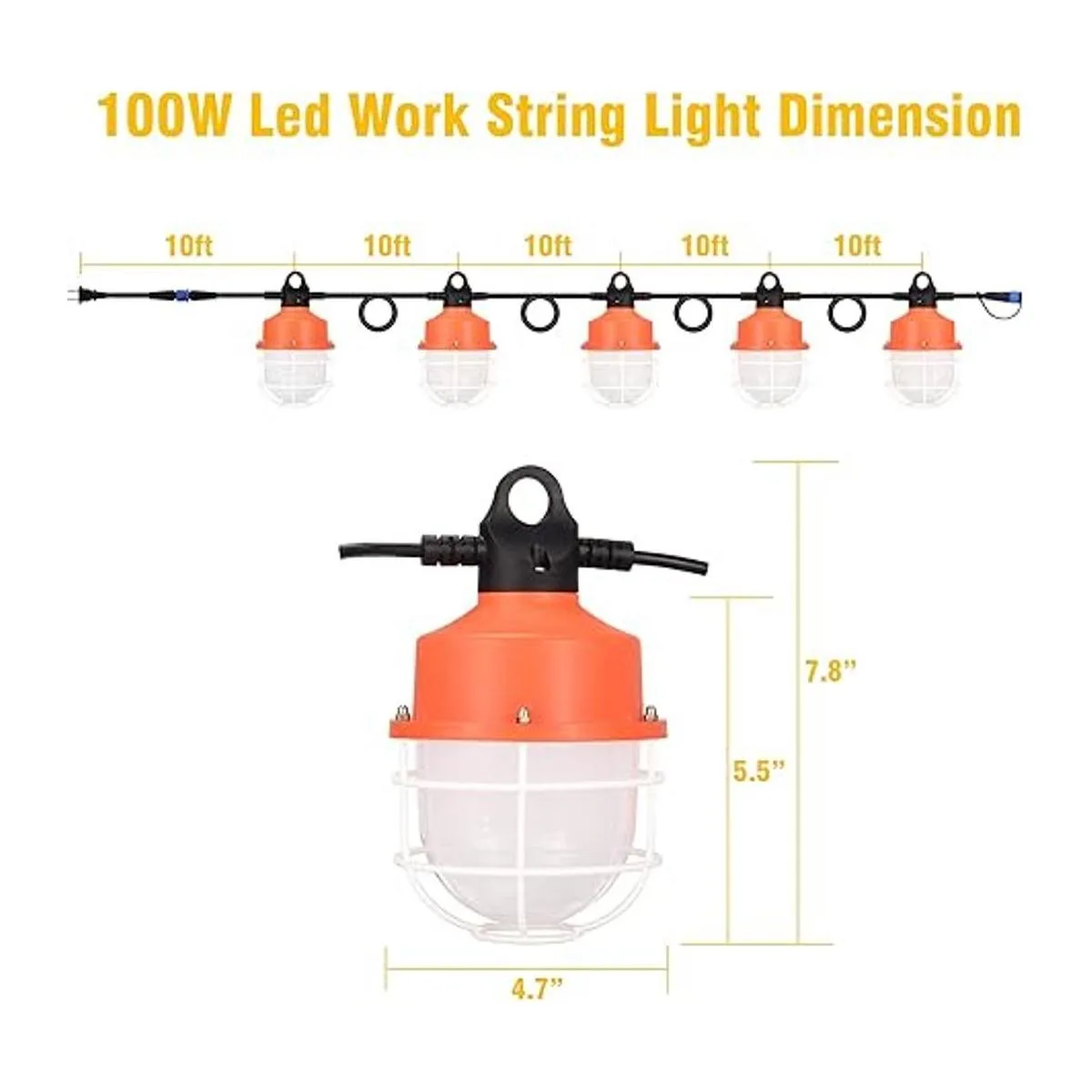 dephen 100W LED Luz de Construcción 50ft Enlazable 12000Lm 5000K IP65 de Grado Comercial LED Luz de Trabajo Temporal, Portátil Luz de Trabajo para Exterior Interior Empleo Almacenamiento Taller ULListed