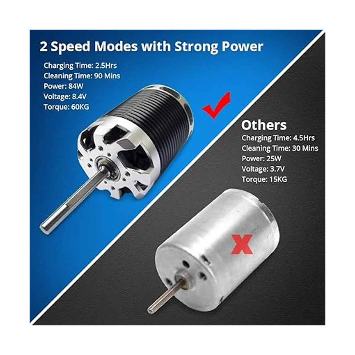 1. Potente limpieza: el limpiador giratorio Adpow puede durar continuamente hasta 3 horas después de sólo 2,5 horas de carga rápida, menos tiempo de carga, mucho tiempo de duración. Tiene un motor de 84 W y dos baterías recargables de 8,4 V. ngulo más ajustable, ángulo de 80 que puede limpiar más espacio y esquinas que el cepillo giratorio normal no puede tocar. Solo necesitas un dispositivo para limpiar todo con solo girar un cepillo