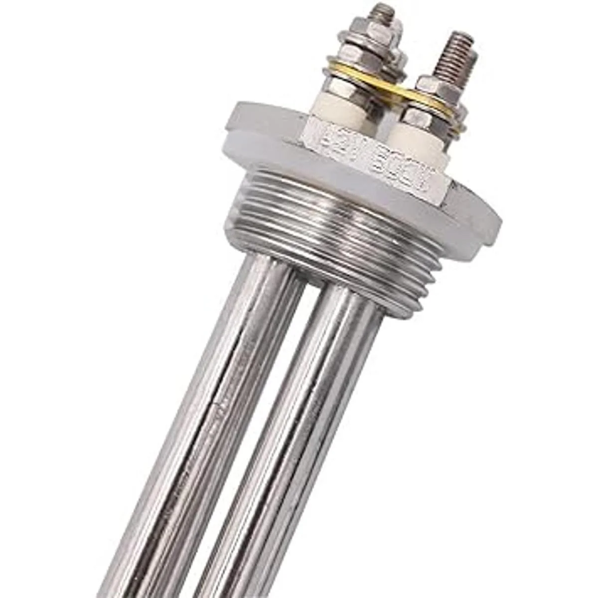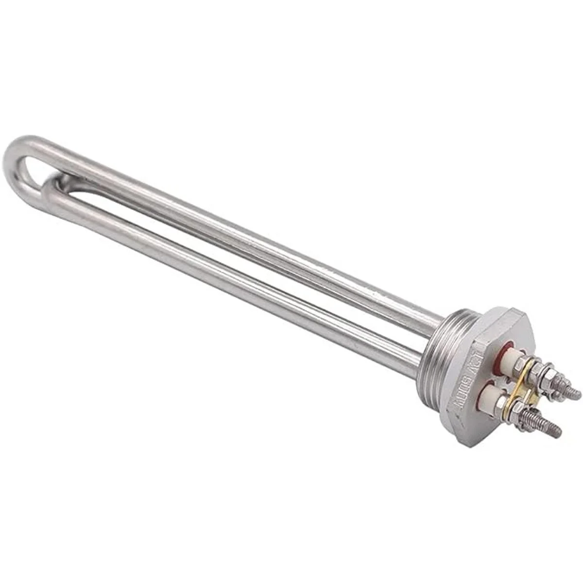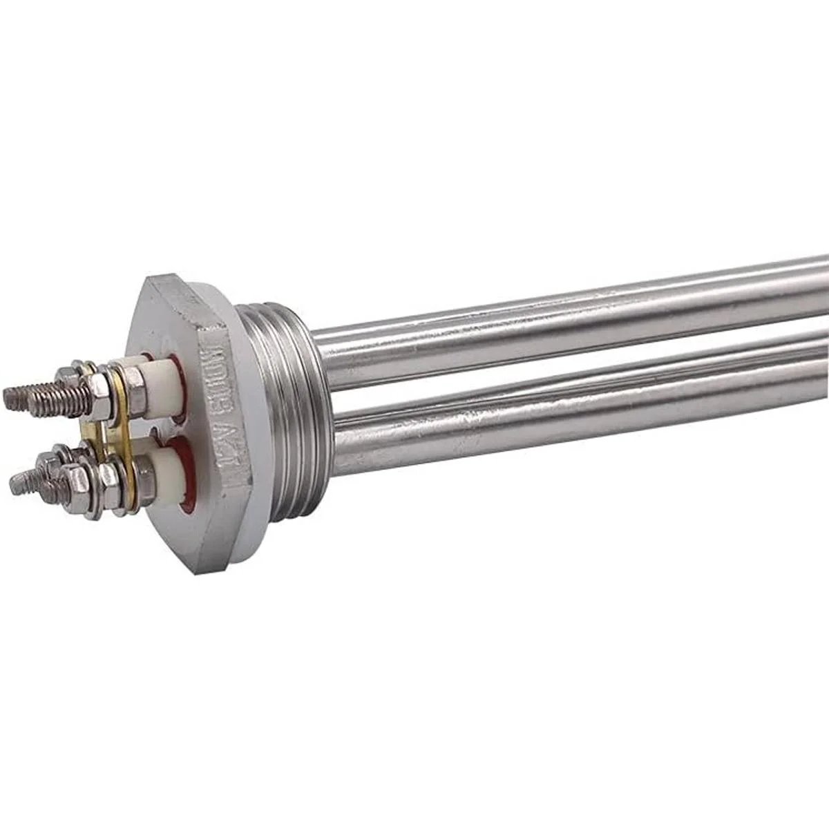 Dernord Calentador de inmersión, 12 voltios, 600 vatios CC, elemento calentador de acero inoxidable con elemento de fijación, 1 pulgada, NPT tipo doble U.