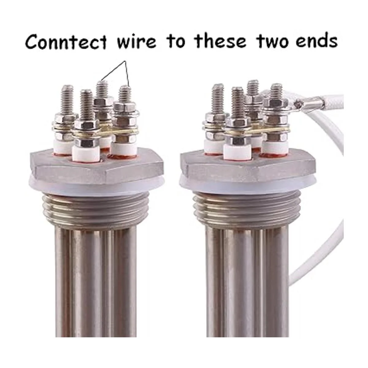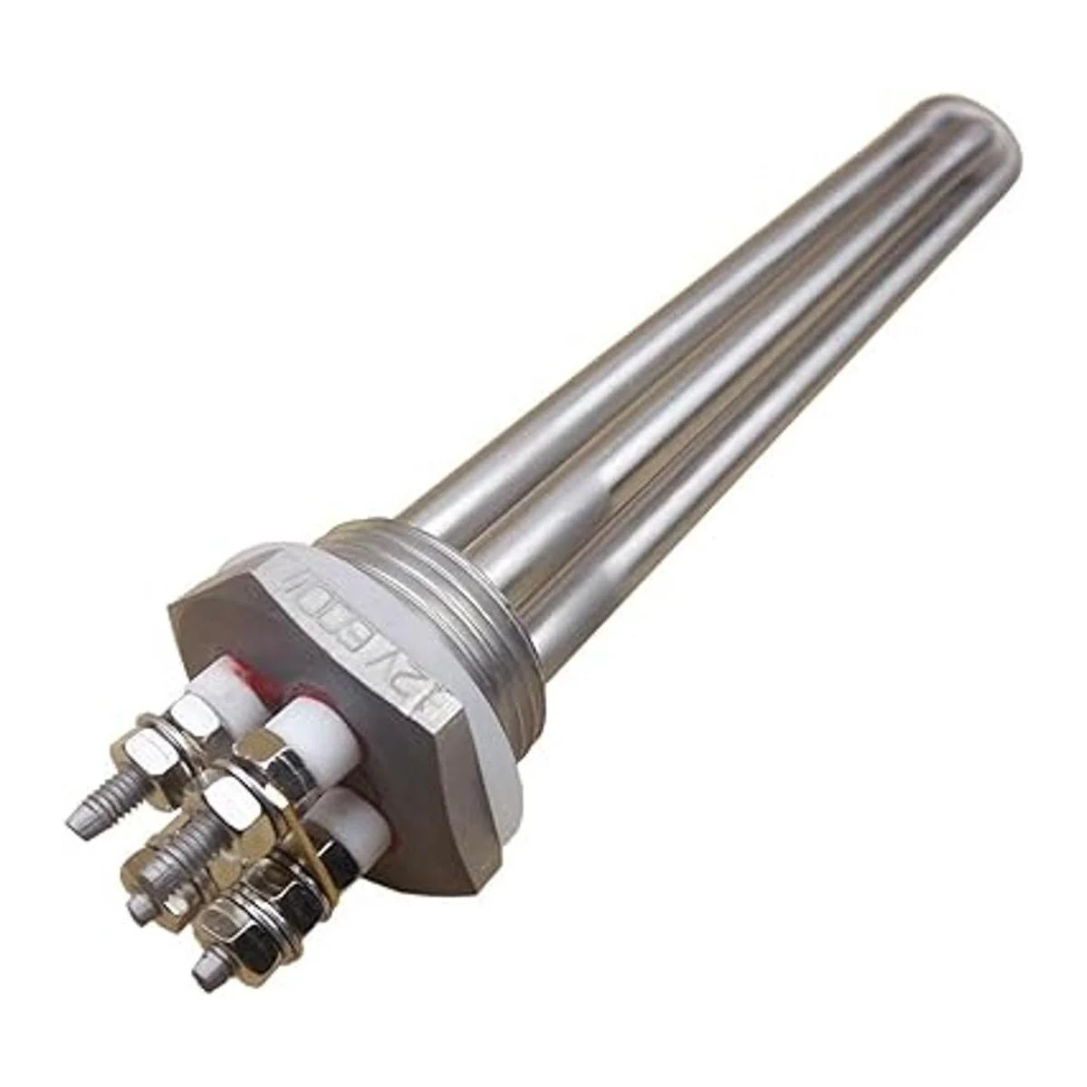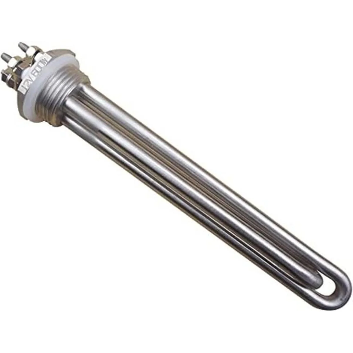 Dernord Calentador de inmersión, 12 voltios, 600 vatios CC, elemento calentador de acero inoxidable con elemento de fijación, 1 pulgada, NPT tipo doble U.