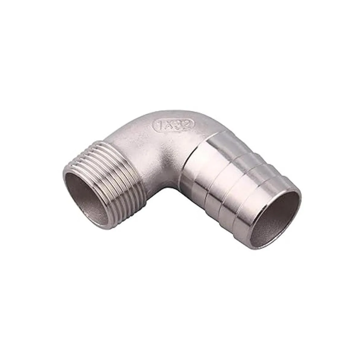 DERPIPE 114 manguera de púas x 1 macho NPT acero inoxidable 90 grados codo rosca de púas