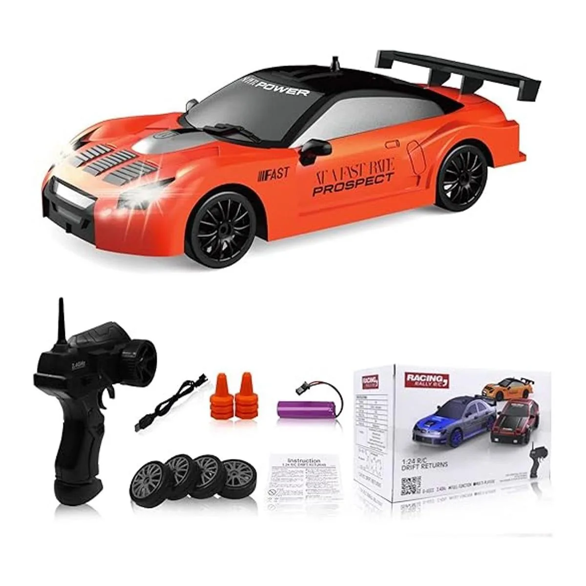 Desdoni Coche de deriva RC de 2.4 GHz, escala 124, 4 WD, control remoto de alta velocidad, con luces LED, baterías y neumáticos de deriva, autos de juguete deportivos para adultos, niños y niñas, regalo