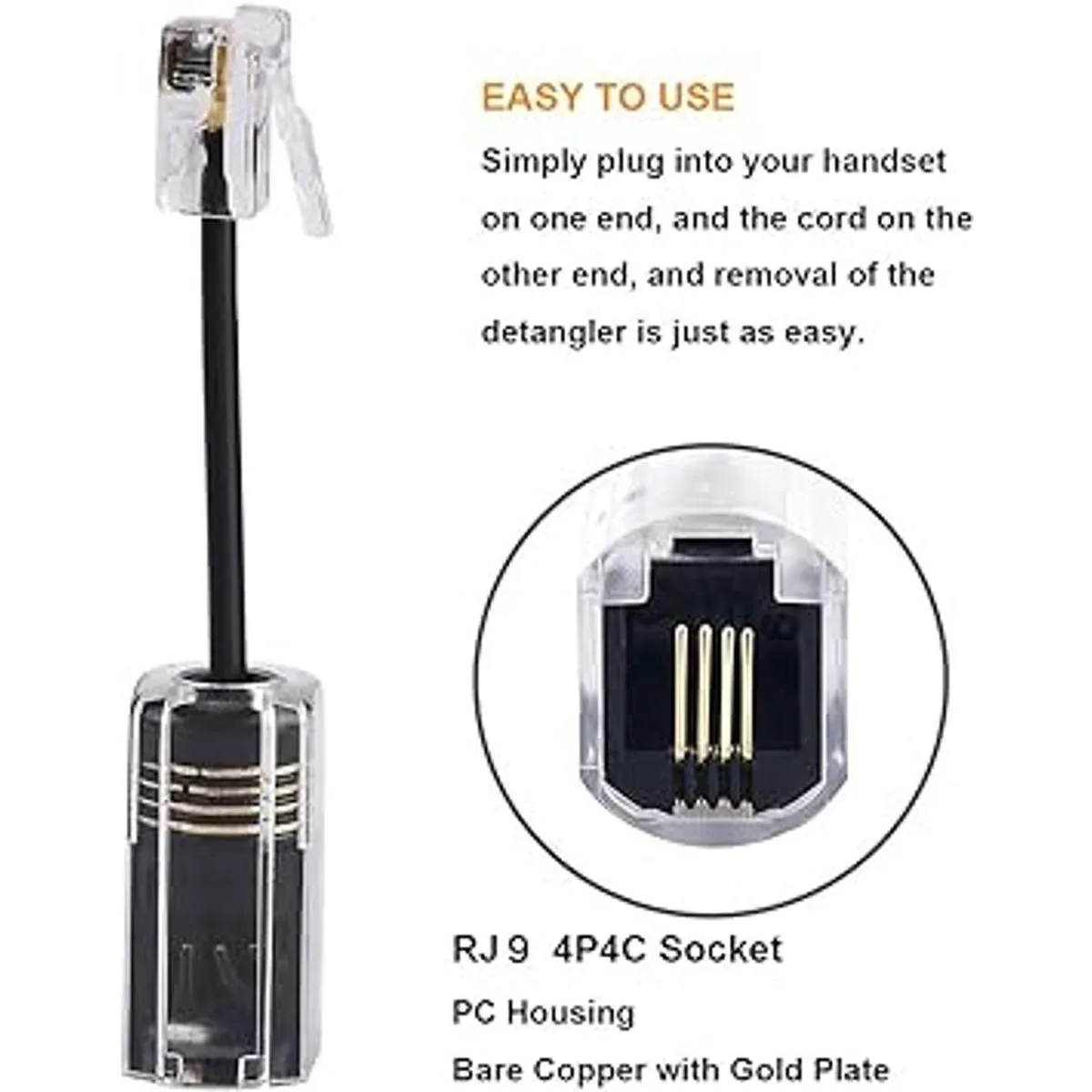 Fácil de usar: deja de desenredar cables de teléfono trenzados. Simplemente conéctalo a tu teléfono en un extremo, y el cable en el otro extremo, y ya estás listo. Quitar el desenredador es igual de fácil.
