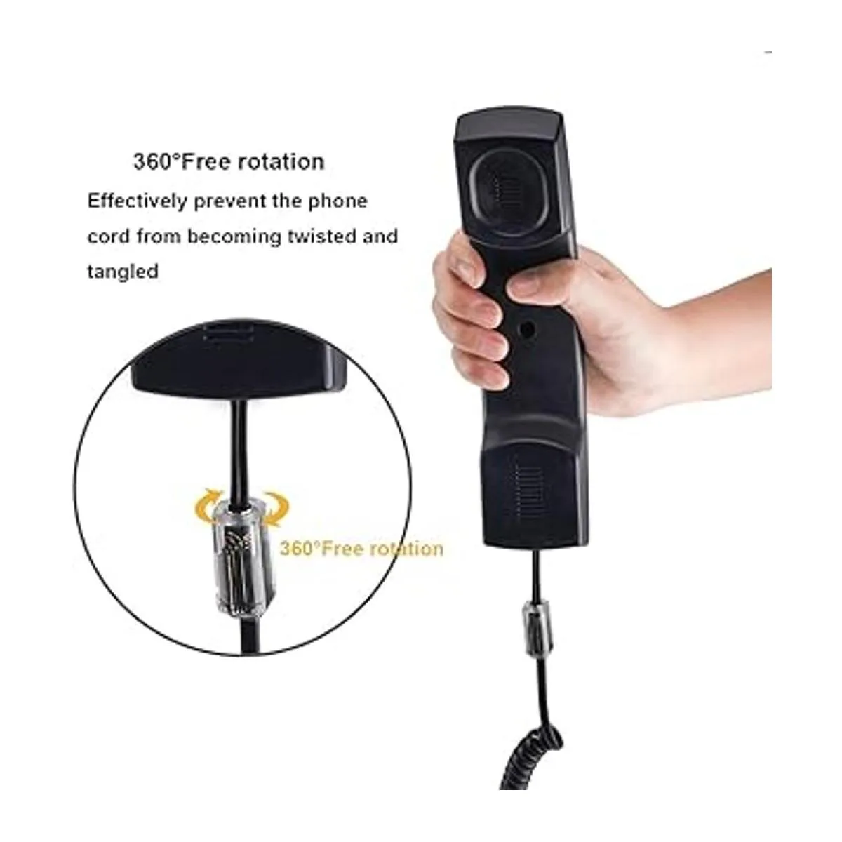 Gira 360 grados: gira automáticamente mientras estás hablando en el teléfono para evitar eficazmente que tu cable de teléfono en espiral se enrede y se ensucie.