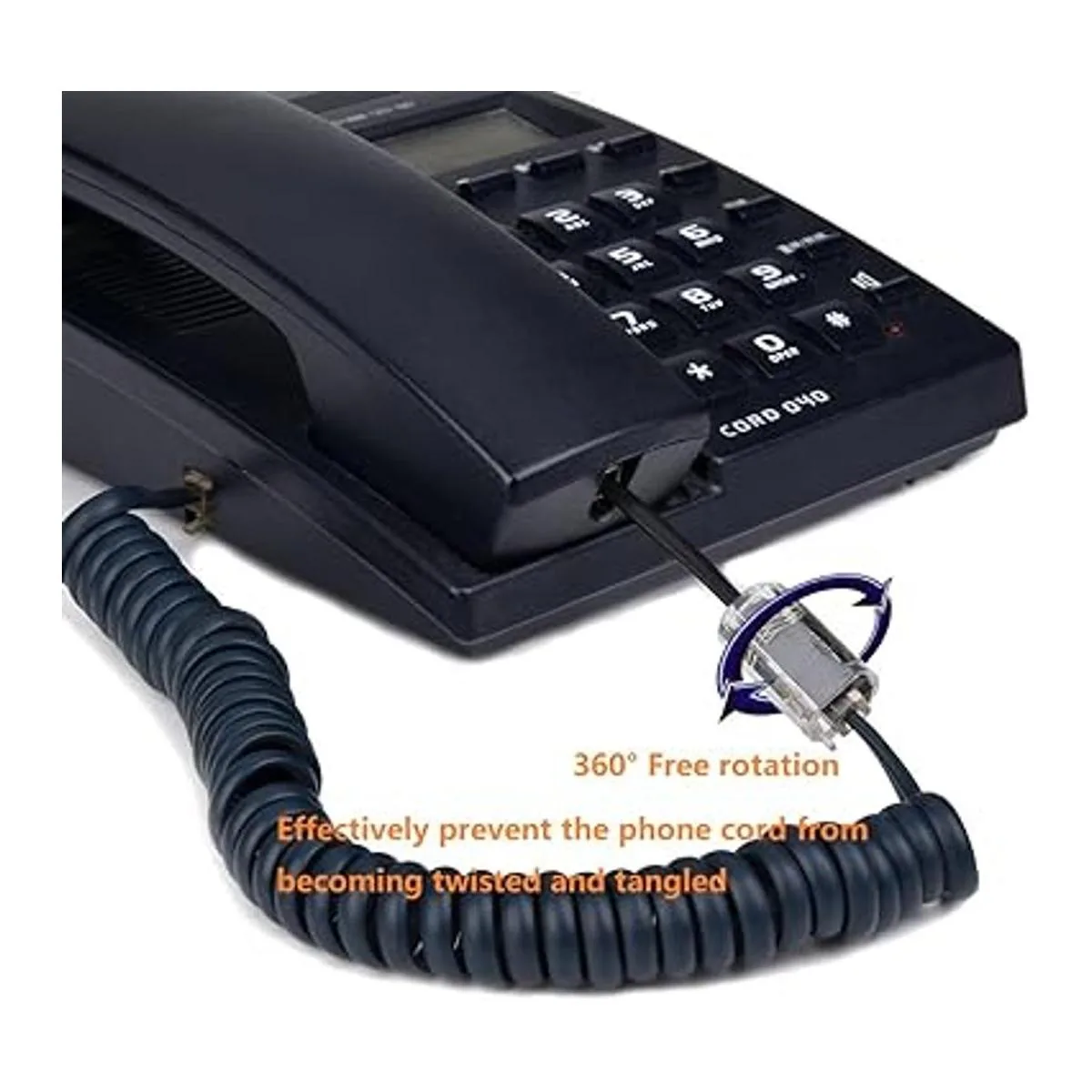 Desenredador de cables de teléfono, 2 unidades de cable fijo giratorio de 360 grados, cable de teléfono antienredos.