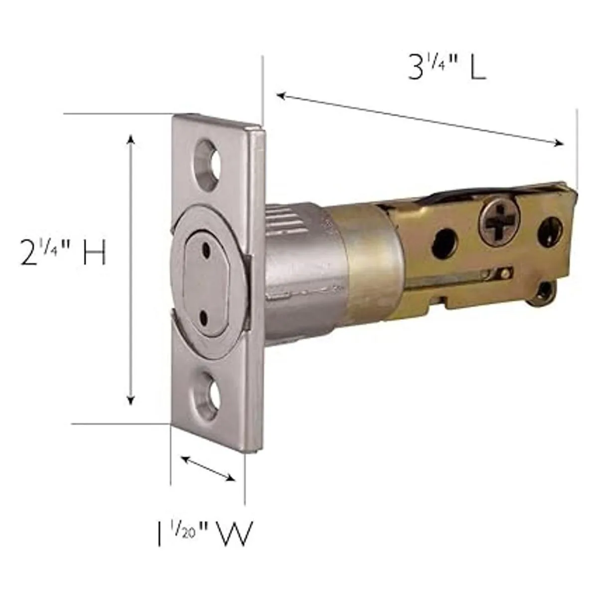 Este pestillo de repuesto es compatible con puertas de entrada y exteriores y cuenta con un acabado de níquel satinado