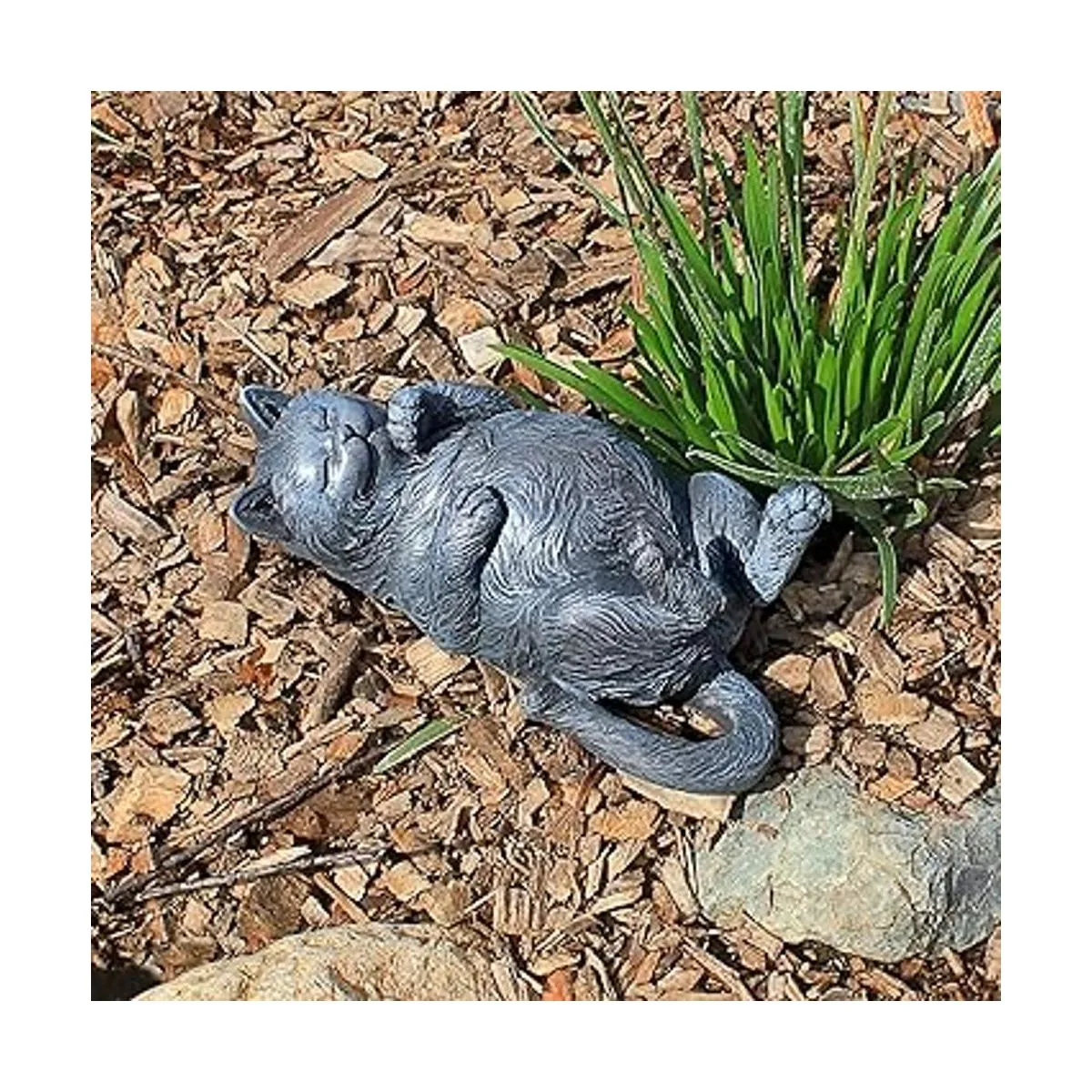 Design Toscano Estatua de gato juguetón en la espalda, piedra gris