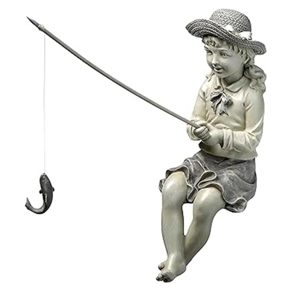 Exclusivo de Design Toscano, esta pequeña pescadora con caña y pez es un regalo perfecto