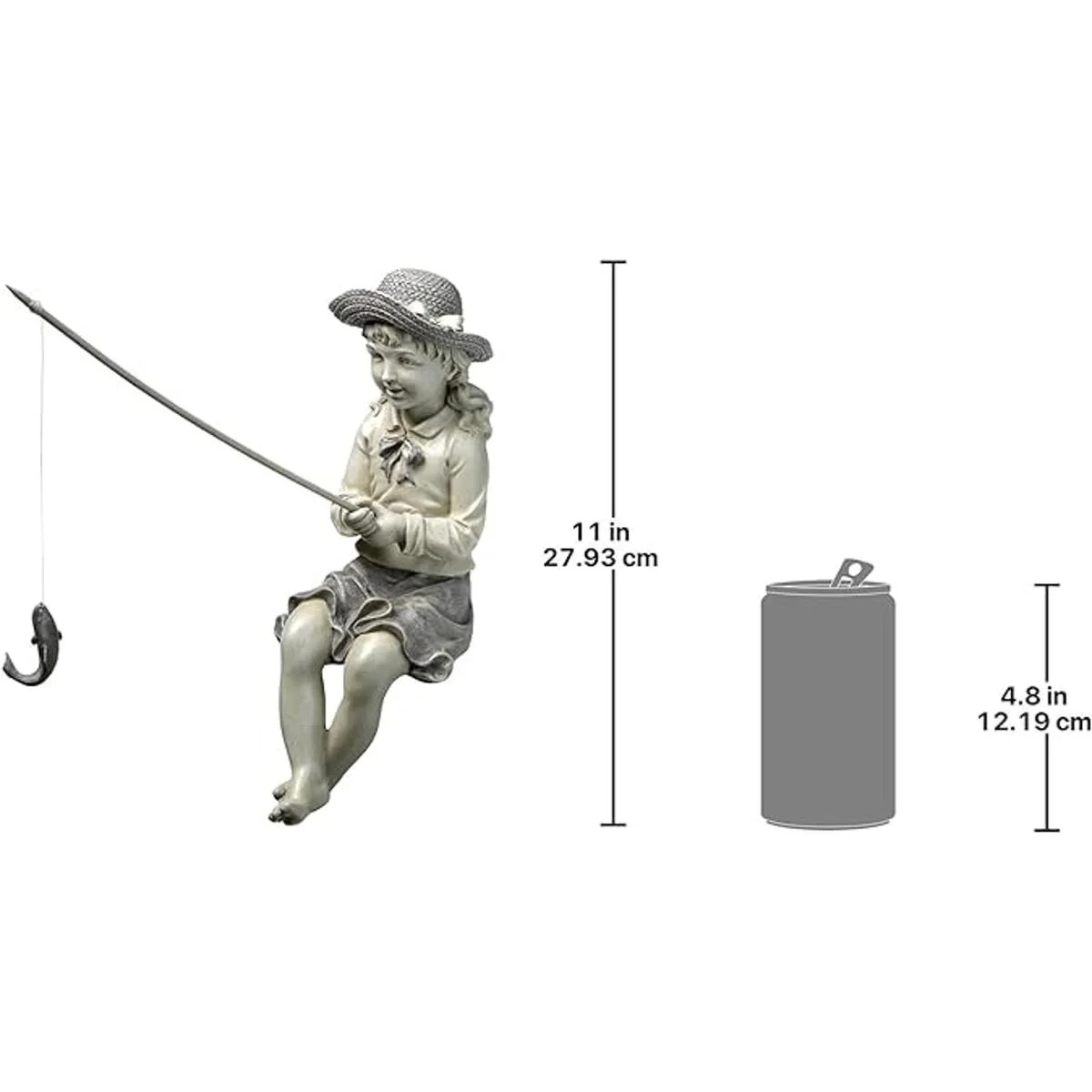 Design Toscano EU9305 Estatua de jardín de pesca para niña y pescadora, 11 pulgadas, piedra de dos tonos, piedra de pesca grande de Nellie S