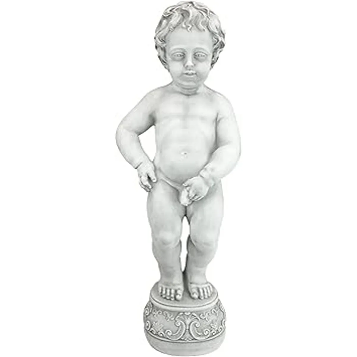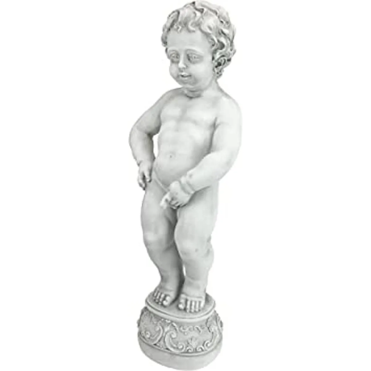 Design Toscano Manneken Pis Peeing Boy Estatua de estatua de estanque entubado en tubería, 27 pulgadas, polirresina, piedra antigua