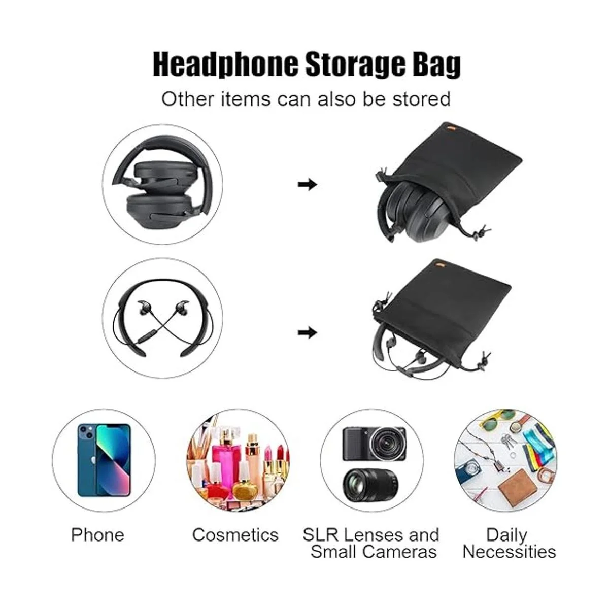Desing Wish Bolsa de almacenamiento ligera para auriculares, bolsa de transporte portátil para auriculares, bolsa de viaje suave para auriculares superiores, auriculares para juegos, auriculares con banda para el cuello pequeño negro