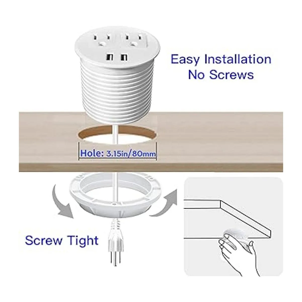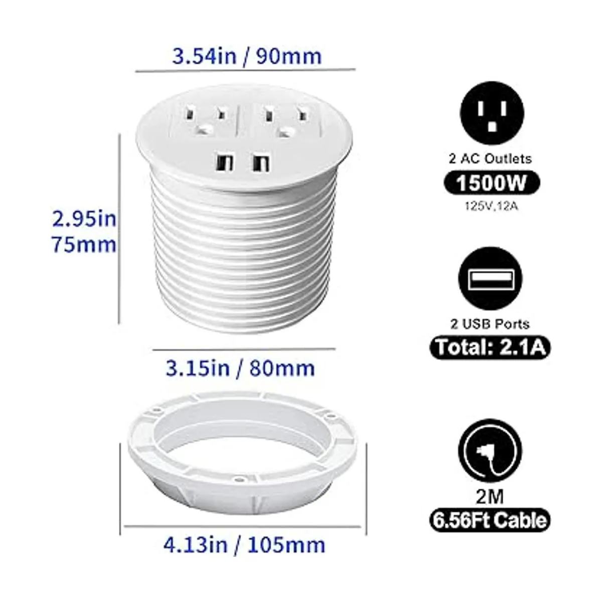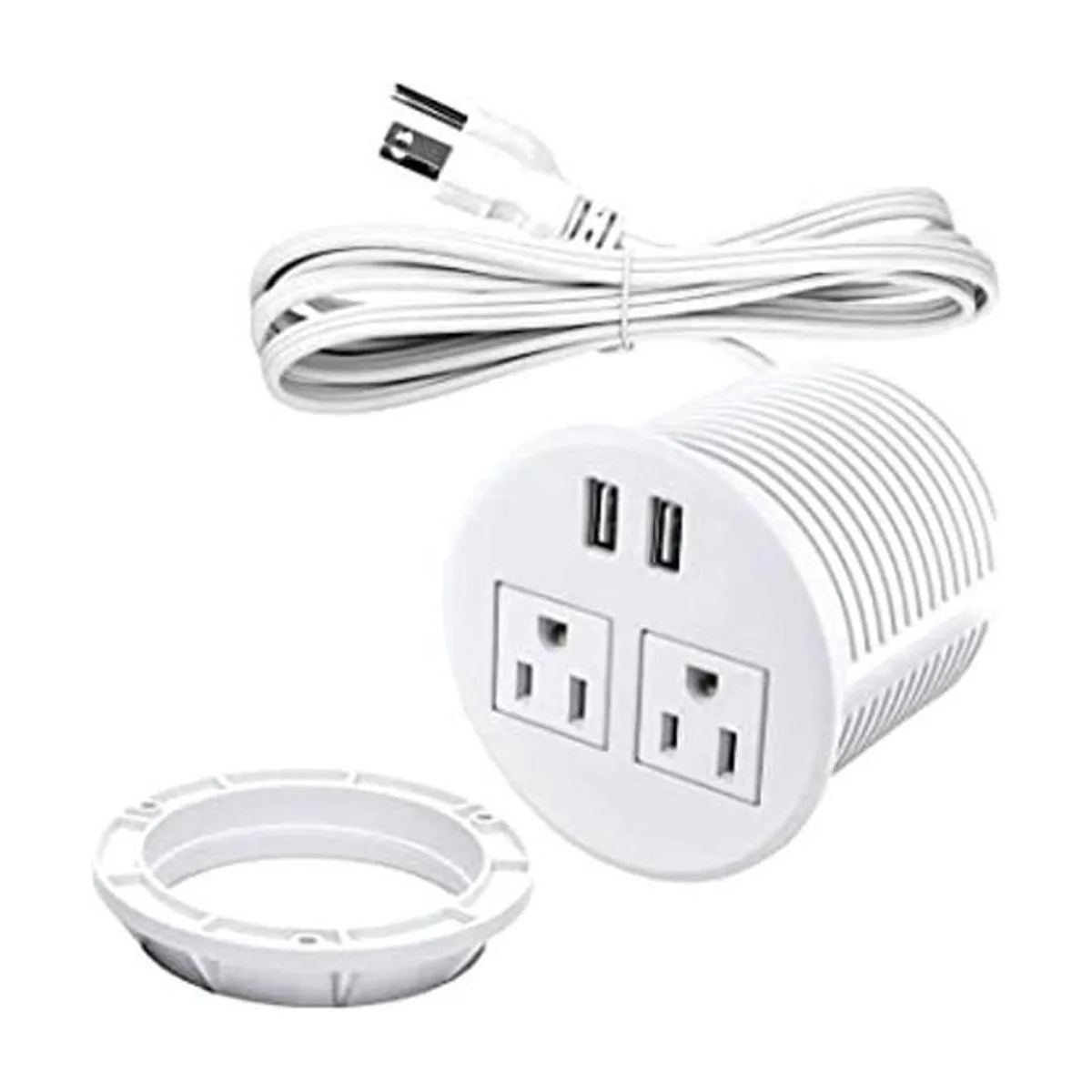 Desk Power Grommet with USB Ports Desktop Outlet Recessed Power Bar for Countertop Sofa Cabinet Conference White