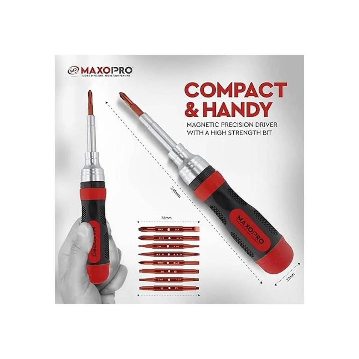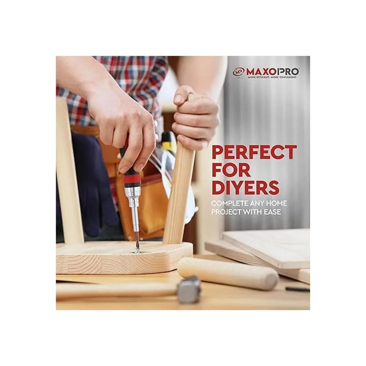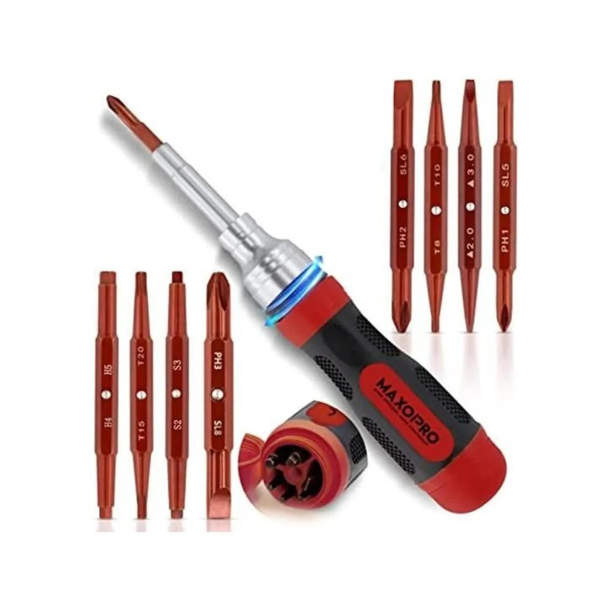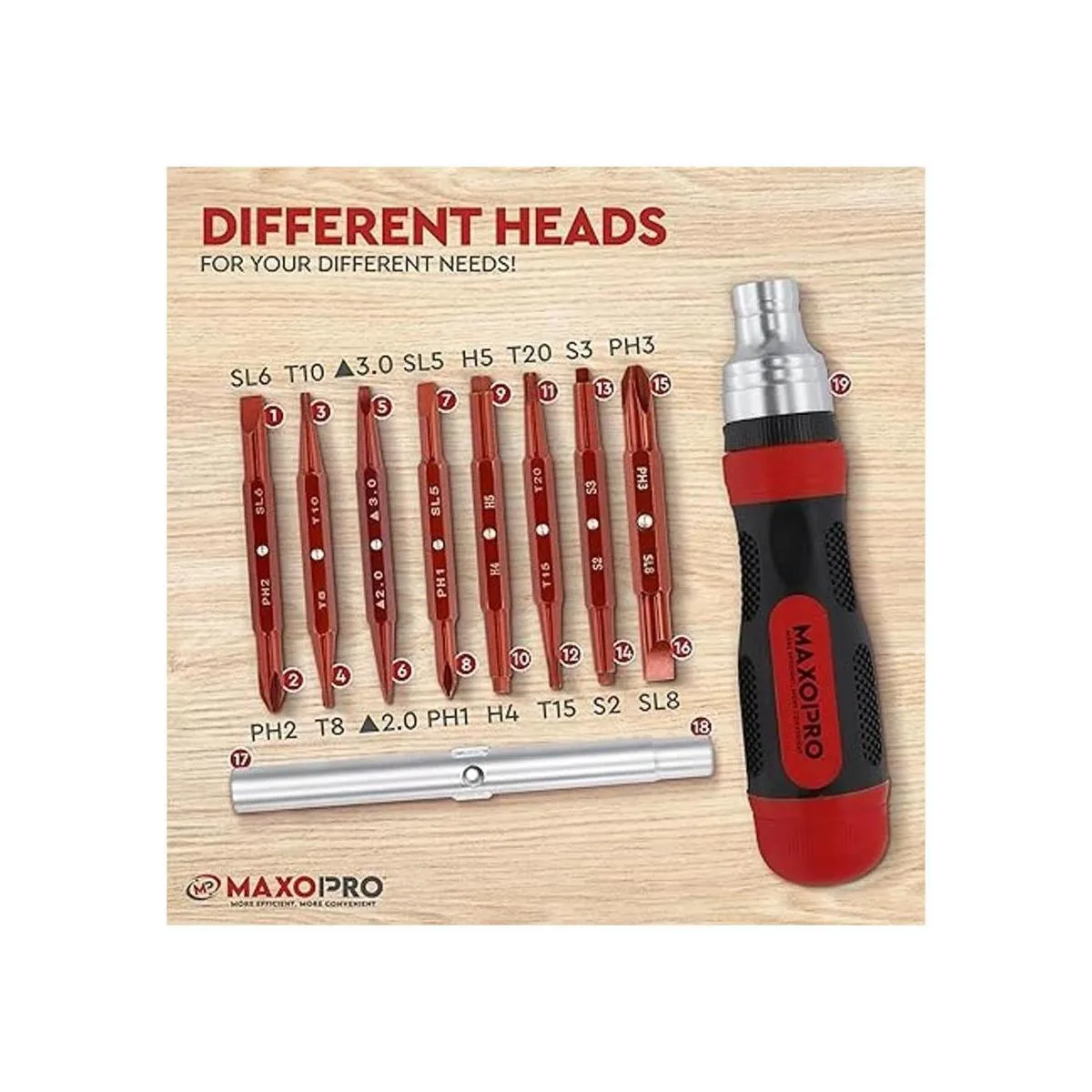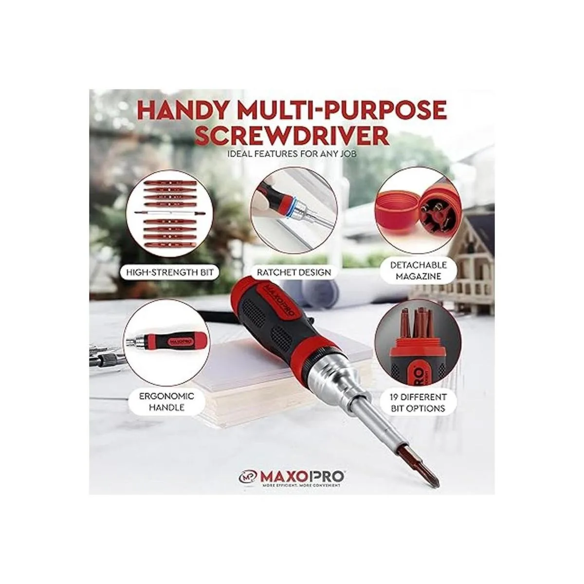 Destornillador múltiple de trinquete con puntas magnéticas, juego de destornilladores de trinquete 19 en 1, destornillador todo en uno, portátil y multiusos, PhillipsranuradoTorxStarHexSquare Bits MaxoPro