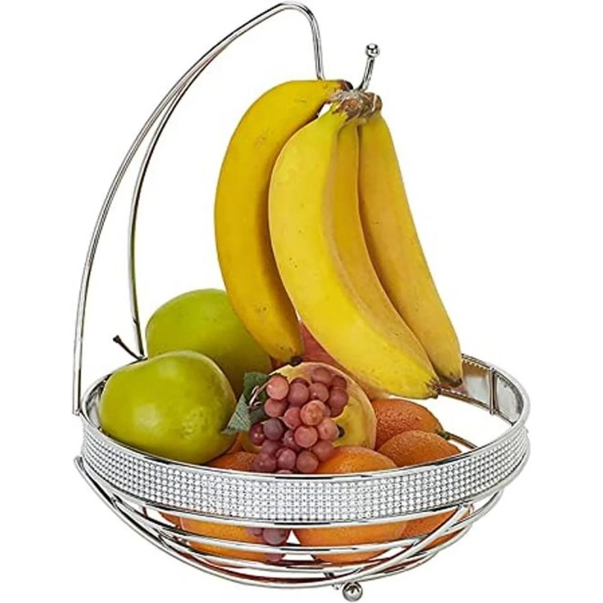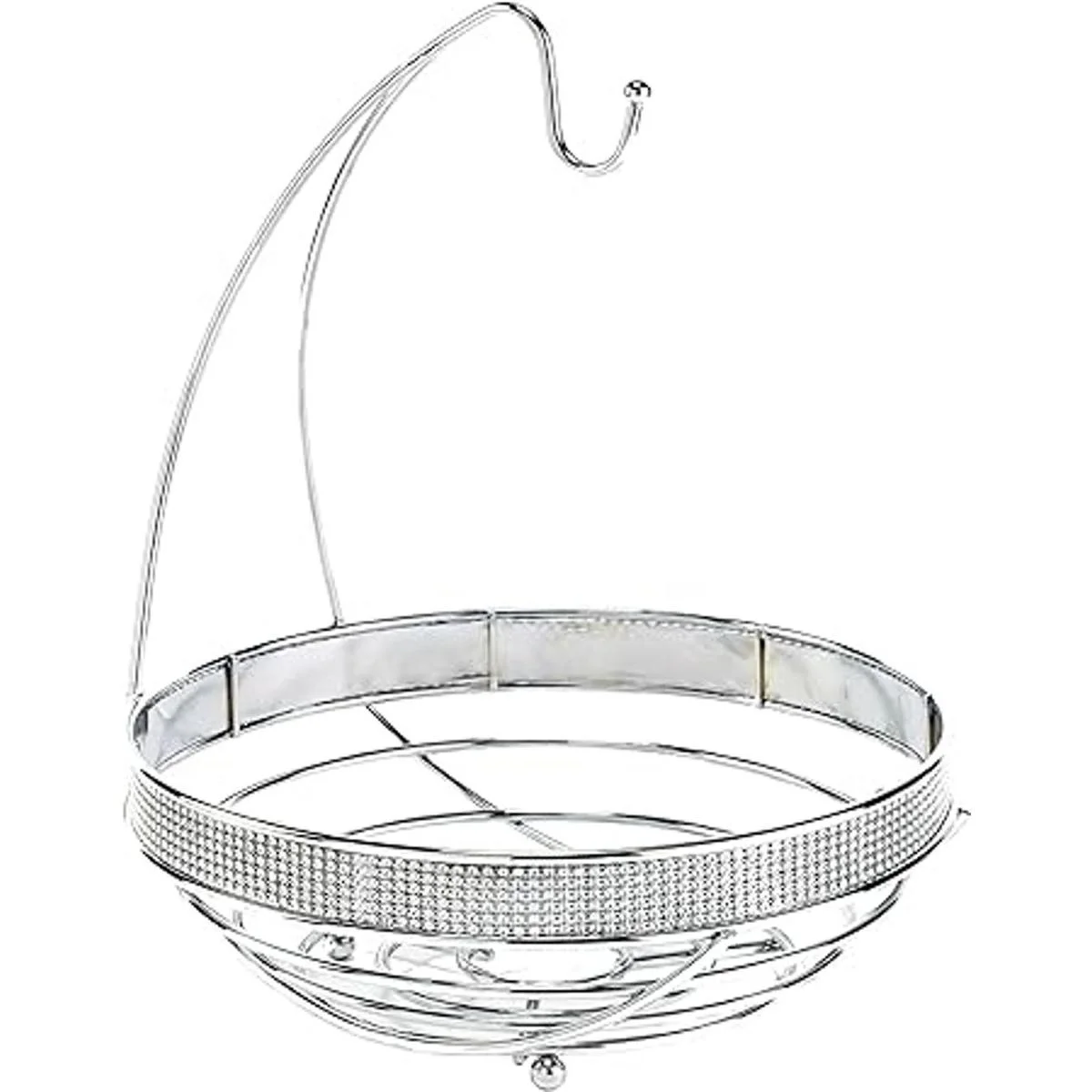 Detalles de la cocina Cesta redonda con colgador de árbol de plátano, encimera, sostiene y muestra frutas, verduras y productos horneados, despensa almacenamiento y organización, colección de diseño pavimentado de diamante, cromo