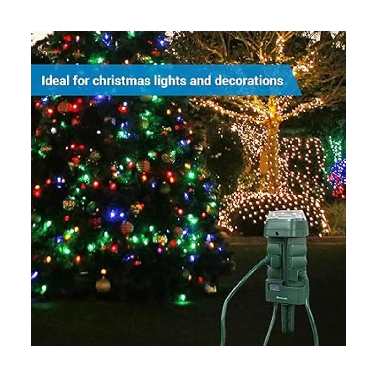 Tomas giratorias y cable de 6 pies: 3 salidas fijas, las otras 3 salidas se pueden girar hasta 180, adecuado para enchufes en cualquier dirección; el cable de extensión de 6 pies permite un rango de instalación más grande; perfecto para luces de Navidad al aire libre, estanques, bombas de piscina, etc.