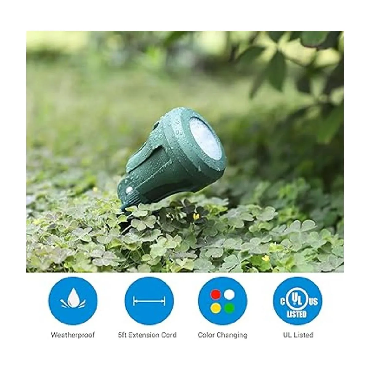 DEWENWILS Foco de Halloween al aire libre, luz LED impermeable de 400 lm para exteriores con 3 lentes adicionales rojo, amarillo verde, luces verticales al aire libre para vacaciones, árboles, decoración de jardín, cable de extensión de 5 pies, certificación UL