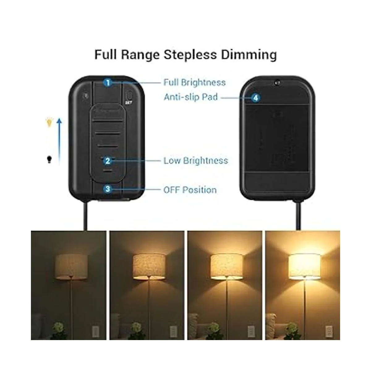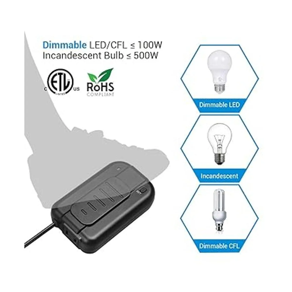 Regulador de intensidad compatible con LED: el interruptor de atenuación de luz en línea funciona con bombillas LED regulables de hasta 100 vatios o incandescente de 500 vatios; voltaje de entrada de 110 a 120 VAC; cable de extensión de 5 pies que te permite colocar el regulador de intensidad de la lámpara en una zona de fácil acceso
