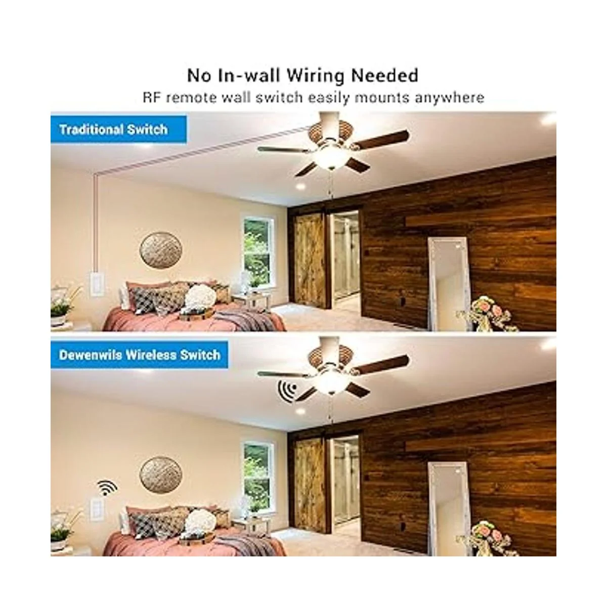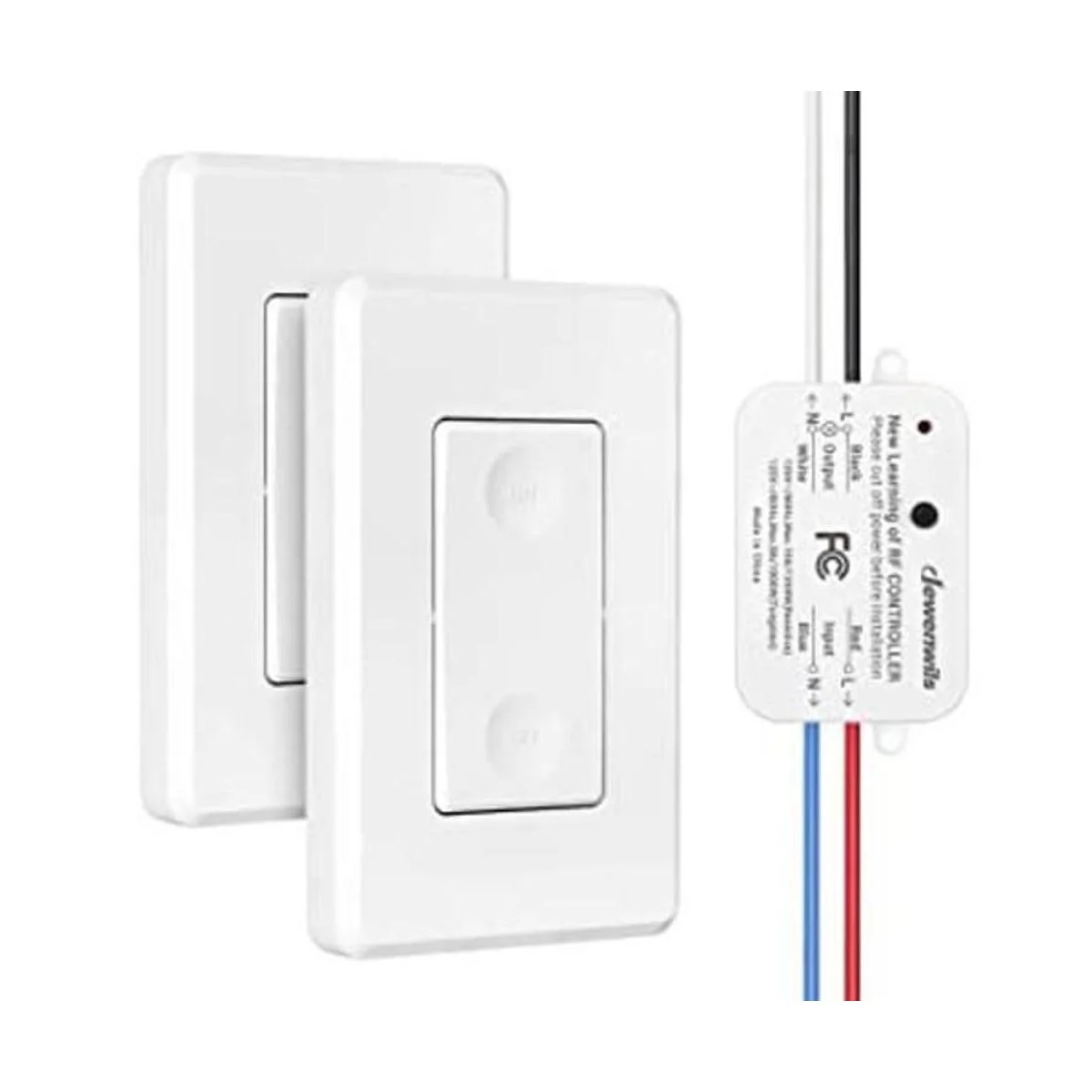 DEWENWILS Kit de interruptor de luz inalámbrico y receptor, interruptor de pared de control remoto, accesorio de iluminación para luces de techo, ventiladores, lámparas, sin cableado, rango RF de 100 pies, 2 interruptores y 1 receptor