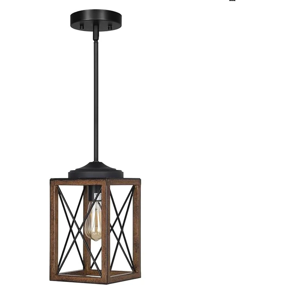 DEWENWILS Lámpara colgante de granja, lámpara colgante de metal con acabado de grano de madera, tubos ajustables de 48 pulgadas para techo plano y inclinado, isla de cocina, dormitorio, comedor, base E26, con certificación ETL