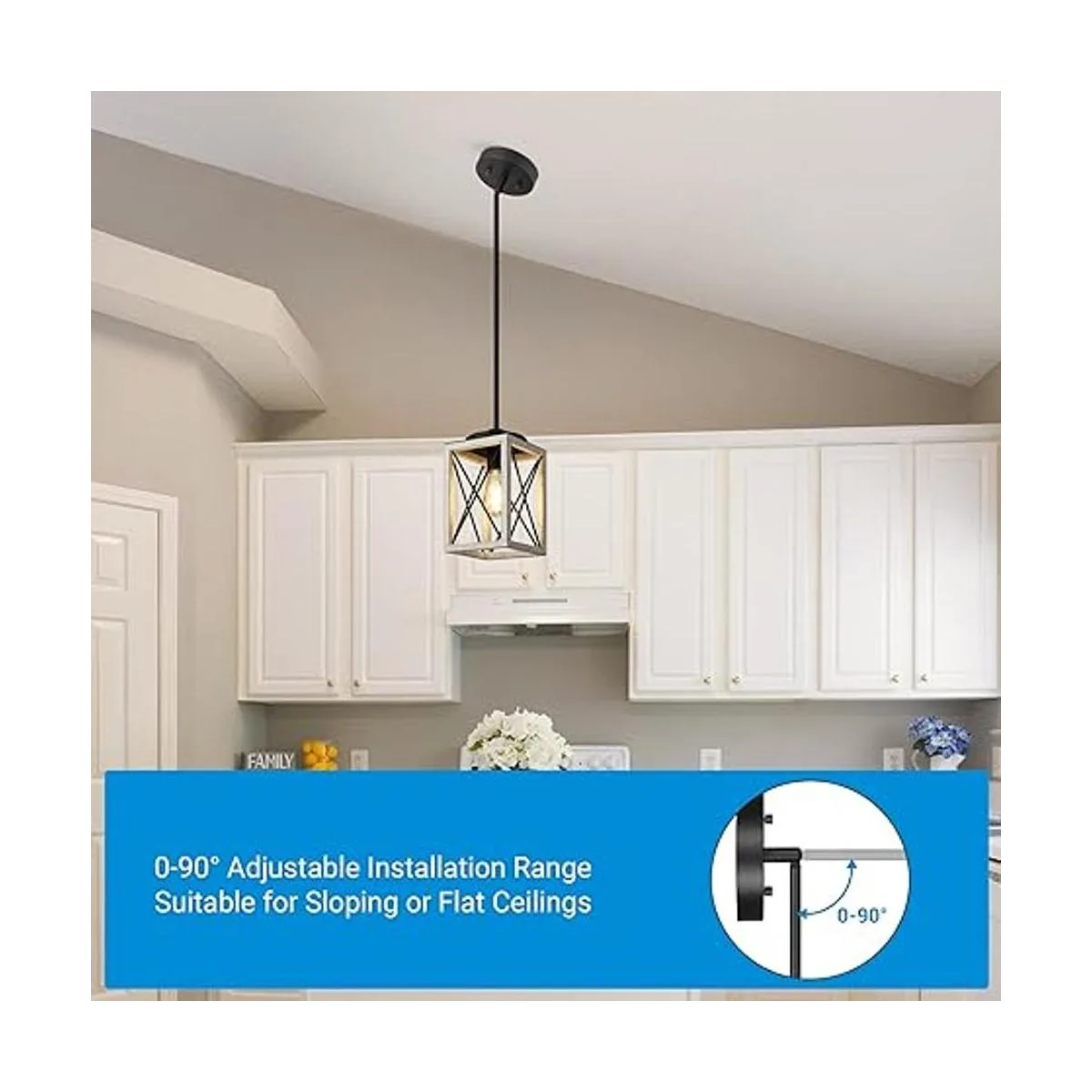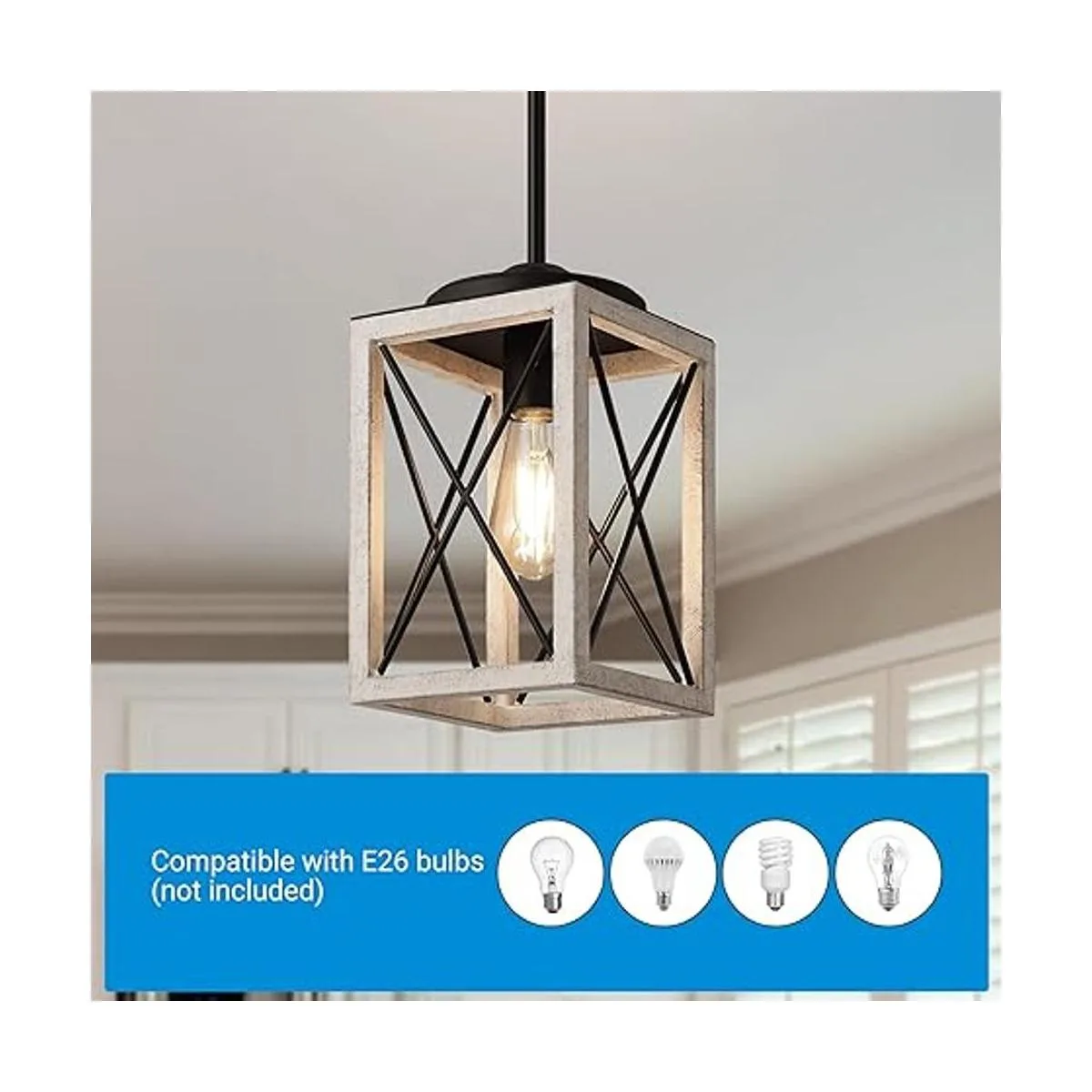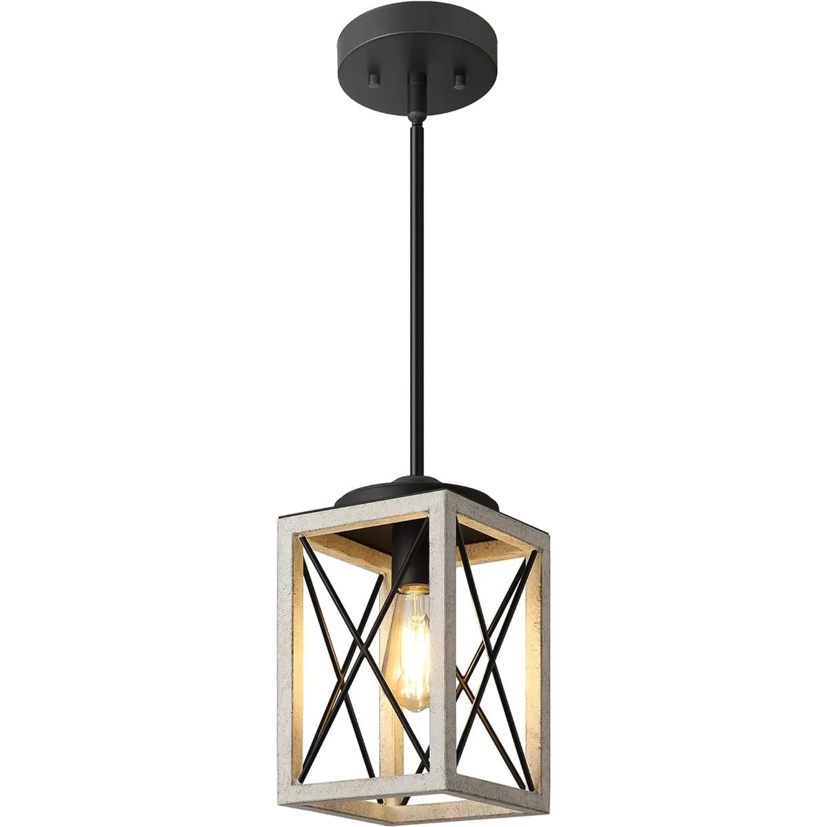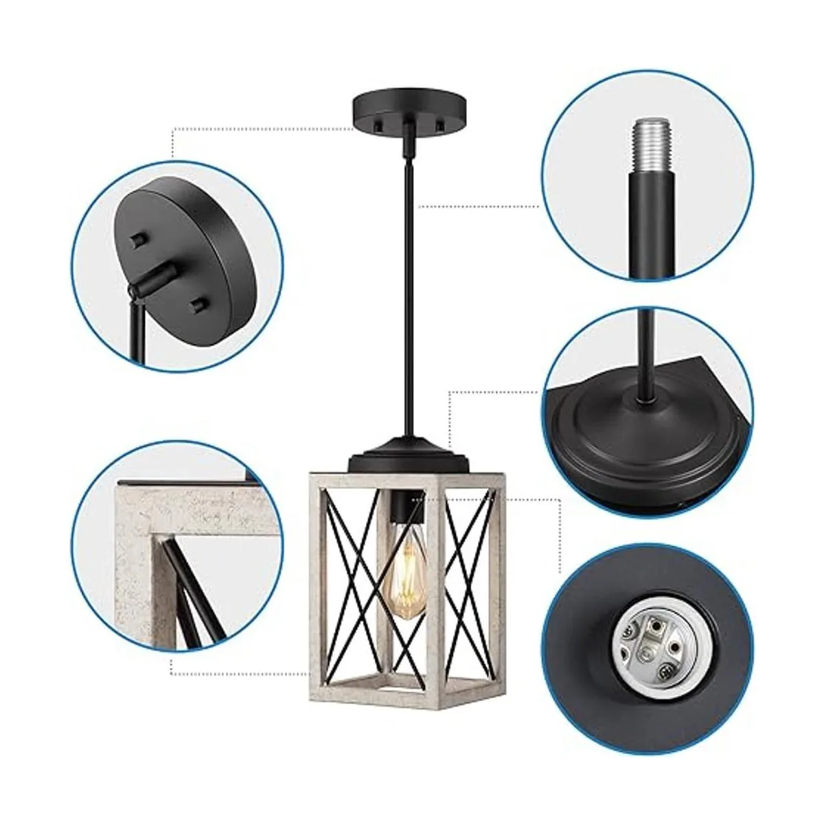 DEWENWILS Lámpara colgante, lámparas colgantes de metal con acabado de grano de madera, tubos ajustables de 48 pulgadas para techo plano y inclinado, lámpara de techo colgante para cocina, sala de estar, dormitorio, base E26