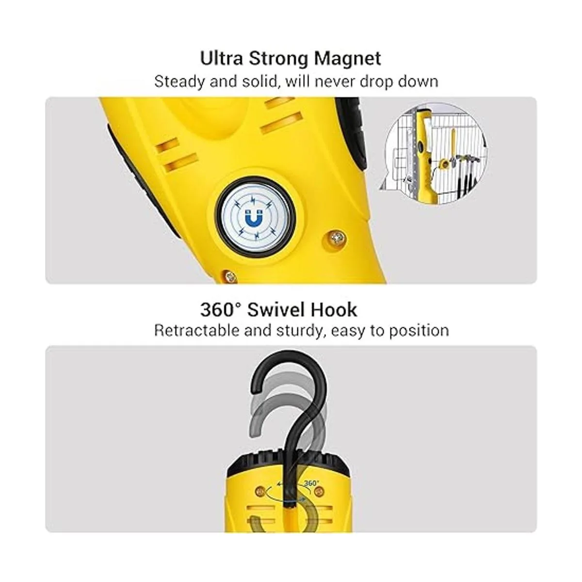 Súper brillante: la luz de trabajo LED COB proporciona una potente salida de 1200 lúmenes y un amplio ángulo de visión. Con diseño antideslizante, el agarre de la mano ayuda a reducir la fatiga para un uso prolongado.