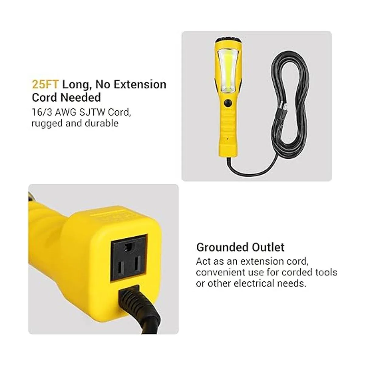 DEWENWILS Luz de trabajo LED COB de 25 pies, luz LED de 1200 lúmenes, luces de trabajo con cable de mano extra largas con imán fuerte, gancho giratorio, certificación ETL