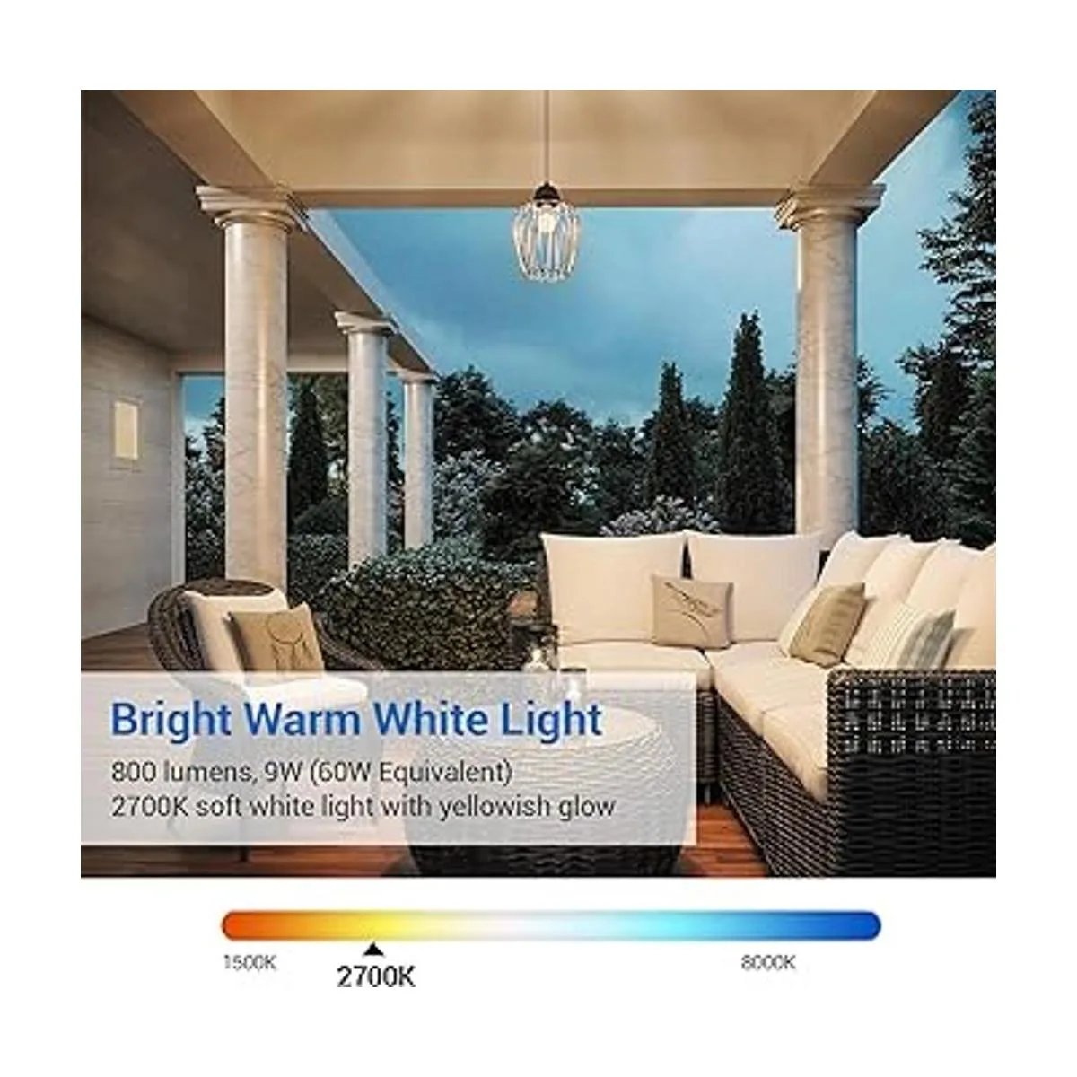 2700 K blanco cálido y luz CRI 80 La bombilla LED blanca suave genera un brillo cómodo y cálido amarillento y tranquilo; una opción popular para el hogar; adecuada para áreas donde quieres relajarte o entretener; la luz CRI 80 de alto índice de reproducción de color está cerca del valor del sol y hace que los colores parezcan más ricos, verdaderos y naturales