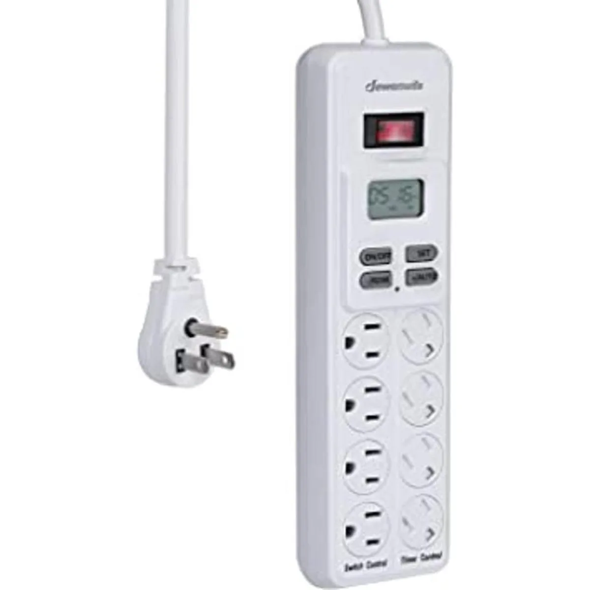 DEWENWILS Regleta de alimentación con temporizador, accesorio de tanque de dragón barbudo de toma de interior, luz de cultivo de tortuga, acuario, cable SJT de 6 pies, 8 tomas de tierra con 4 controles temporizados, certificación UL 15A